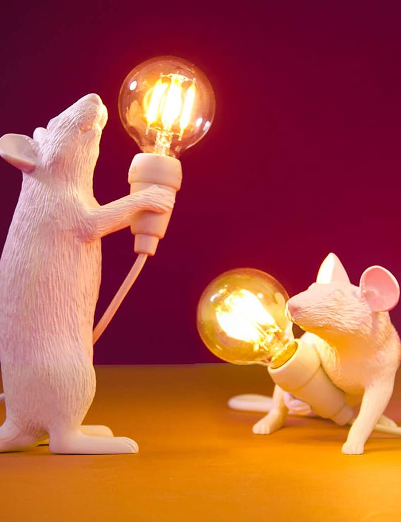 Seletti, a créé une série de lampes qui prennent la forme de souris troublantes de réalisme. Déclinées en blanc, gris ou doré, les souris