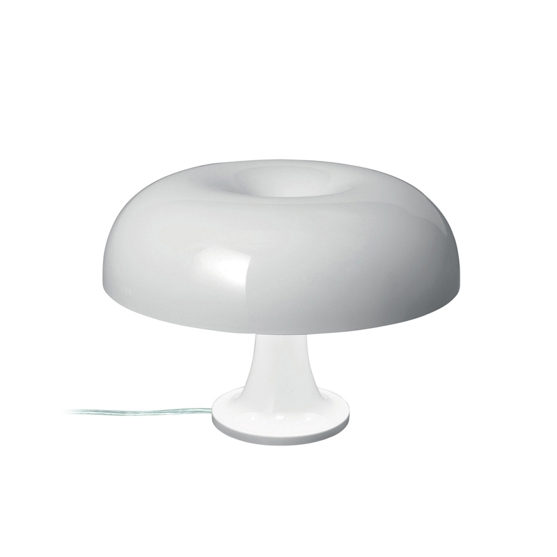 Nessino, dessinée par Giancarlo Mattioli, est l'édition actualisée et revisitée de la célèbre lampe de table Nesso, éditée par Artemide, qui avait remporté le 1er prix du Concours Studio Artemide/Domus à Milan en 1965 et reconnaissable par sa forme de champignon et ses couleurs très années 70. Le corps et le diffuseur sont en polycarbonate. Sa lumière est diffuse et colorée. Nessino est disponible en orange, orange transparent ou blanc apporter une touche de gaieté dans votre chambre ou dans le salon.