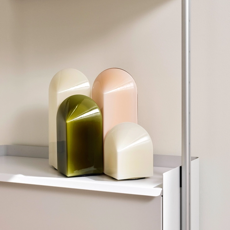 Pour la collection Parade, les designers Viola Heyn-Johnsen and Jonas Trampedach ont été animés par le désir de créer une lampe d’ambiance dotée d’une qualité sculpturale. Editée par Hay, la lampe consiste en une base carrée et un diffuseur en forme d’arche, réalisé en verre coloré. Avec sa forme géométrique, la lampe Parade change d’expression selon l’angle de vue. Les trois tailles disponibles et les différentes couleurs soigneusement sélectionnées se complètent les unes avec les autres, créant un effet harmonieux lorsque plusieurs lampes sont associées. Utilisée seule ou en association de plusieurs modèles, Parade combine fonctionnalité et esthétique pour créer une lampe polyvalente, unique en son genre.