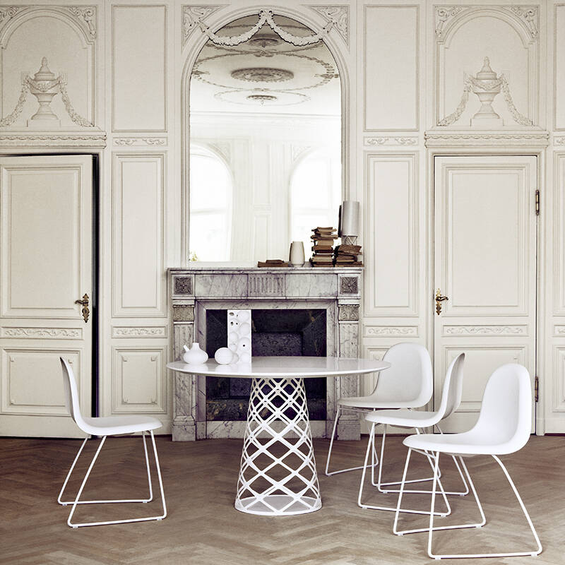 En 1955, l'architecte fonctionnaliste Barba Corsini rénove le bâtiment « La Pedrera » à Barcelone d'Antoni Gaudi, et réalise le mobilier destiné aux appartements dont une série de luminaires. Dessinée par Joaquim Ruiz Millet en hommage à son mentor Corsini, la lampe à poser Pedrera H2O s'inspire des plafonds de la Pedrera, les abats-jours reprenant notamment la forme des cheminées en tôle perforée. A la fois classique et moderne, ce luminaire émet une lumière directe vers le haut, et atténuée sur les côtés grâce au métal perforé. Editée par Gubi, la lampe à poser Pedrera H2O apporte une touche graphique dans un salon ou une chambre et diffuse une lumière douce.