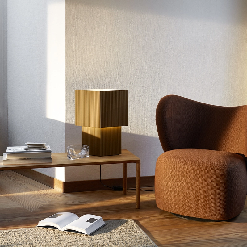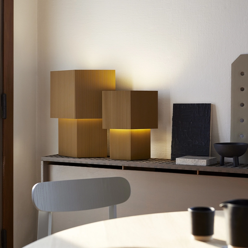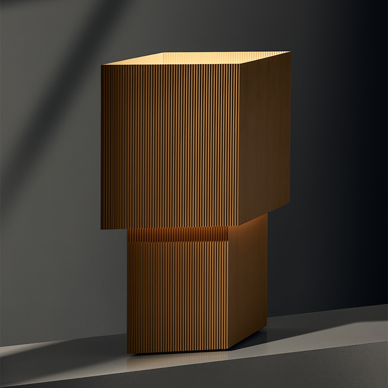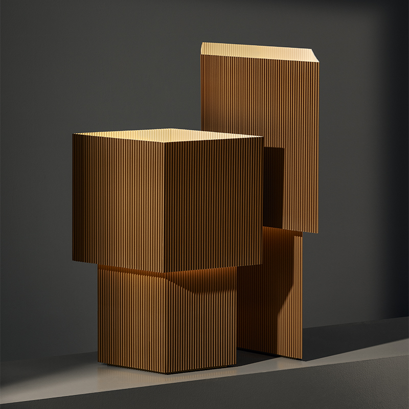 Romb est le résultat d'expérimentations de Broberg et Ridderstråle avec un carton ondulé qu'ils utilisent alors beaucoup lors de la modélisation et du développement de projets d'architecture. La forme, un losange, émergea rapidement et s'est divisé en deux formes; l'une plus grande que l'autre, qui projette une lumière directe intéressante vers le haut mais aussi indirecte vers le bas, sur la base de la forme. La pièce fonctionne bien sur les espaces étroits comme les étagères ou les appuis de fenêtre, et a une forte présence sculpturale. Editée par Pholc, la lampe à poser Romb est réalisée en acier embouti sur mesure avec des bords sans soudure et une grande attention aux détails.