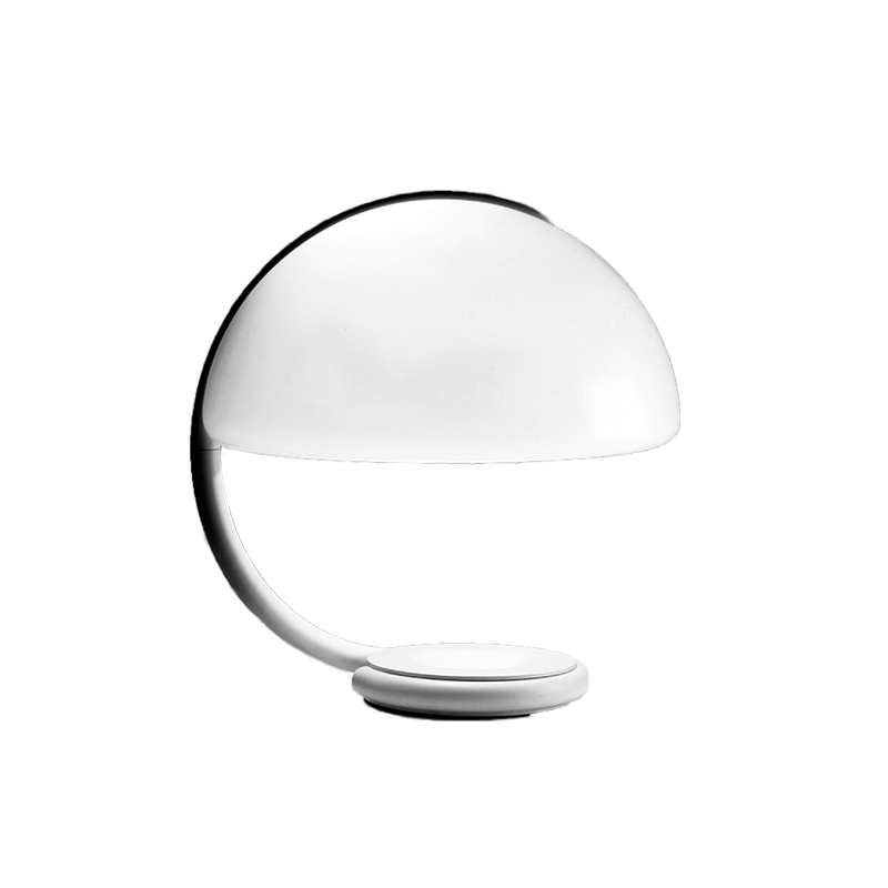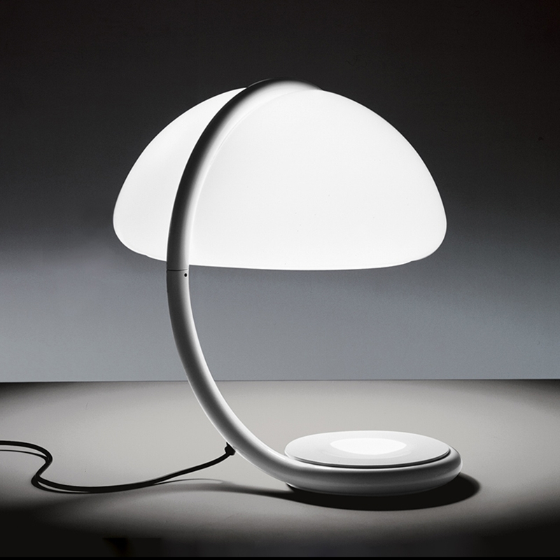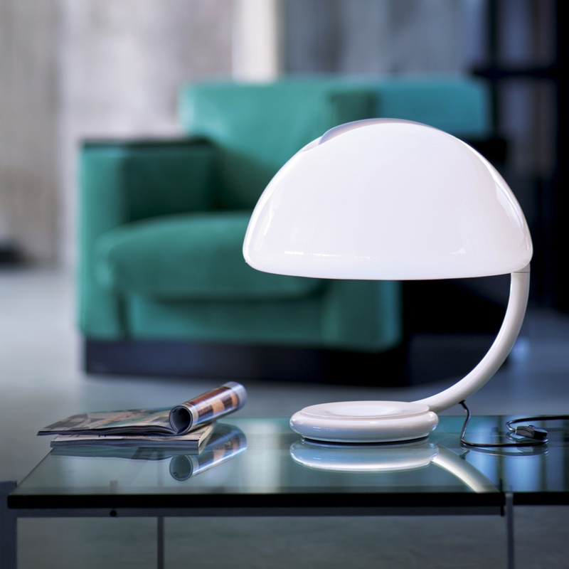 Conçue en 1965 par le designer Elio Martinelli, la lampe à poser Serpente est éditée par la maison italienne Martinelli Luce.