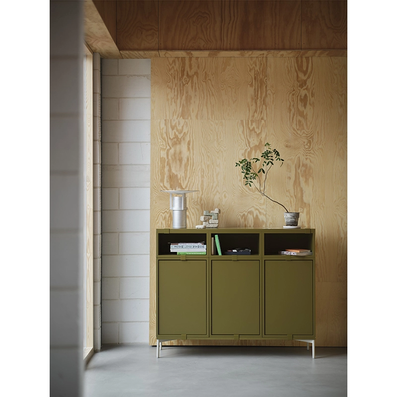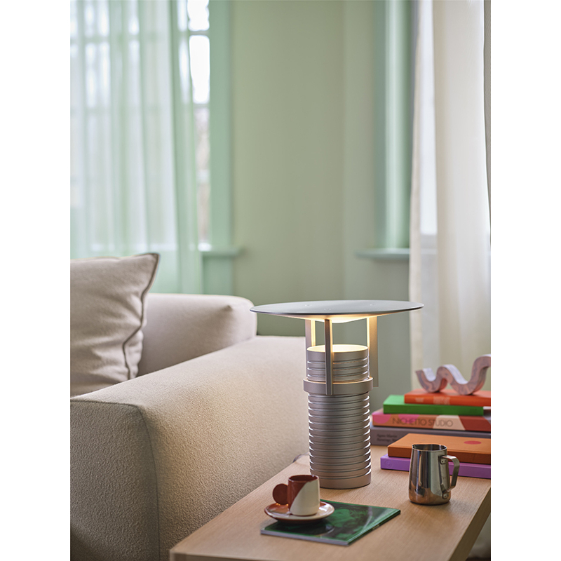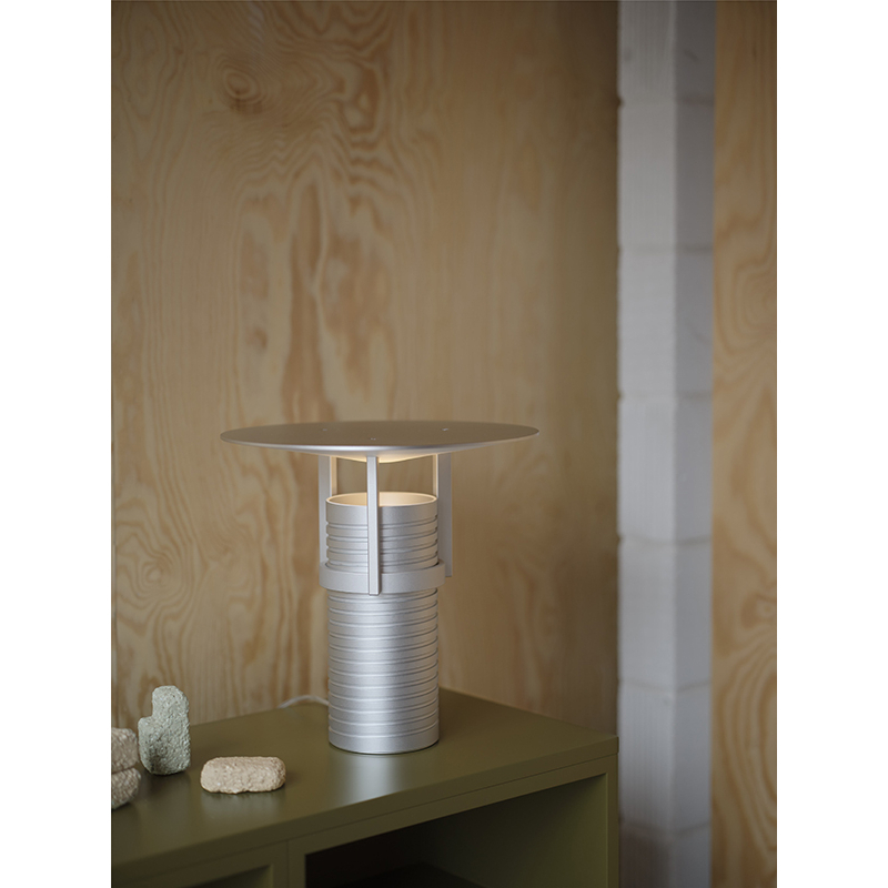 Créée par Jamie Wolfond, la lampe SetMuuto est un parfait mélange entre design industriel et sculptural. La lampe Set consiste en une source lumineuse diffusée vers le haut qui se réfléchit sur un abat-jour en aluminium pour émettre une lumière vive mais indirecte. Cette lampe est fonctionnelle et ludique, grâce à son abat-jour qui se règle en hauteur très facilement par un système de pas de vis, permettant ainsi de modifier l'intensité lumineuse selon les besoins. A la fois visuellement simple et dotée d'un grand caractère, la lampe Set de Muuto s’intègre facilement à tout espace, qu'elle soit placée au sol, sur le rebord d'une fenêtre ou sur un meuble de rangement.