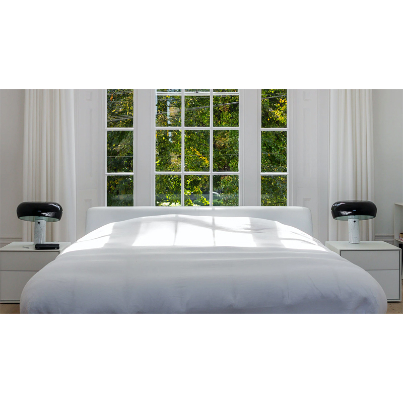Largement inspirée du personnage de dessin animé, la lampe Snoopy de Flos offre un équilibre parfait entre expression formelle et matériaux. Symbiose du design et d’architecture, cette lampe à poser à lumière directe associe un réflecteur en métal peint et une base en marbre blanc, dans un équilibre incertain. En effet, le pied est en marbre blanc et l’abat-jour en métal émaillé noir repose sur une plaque en verre. Pour une ambiance zen, l’intensité de la lumière peut être réglée selon vos envies. Les designers italiens Achille et Pier Giacomo Castiglioni ont conçu la lampe à poser Snoopy en 1967 et Flos a mis à jour la lampe avec un variateur moderne à capteur tactile. Ainsi le diffuseur de la lampe Snoopy émet une lumière filtrée par un disque en verre transparent et occultée par la tête en métal, pour un éclairage plus direct et localisée. La base cylindrique est inclinée, donnant à la lampe Snoopy sa silhouette désormais emblématique. Devenue une pièce majeure du design contemporain, cette lampe fait d’ailleurs partie de la collection permanente du MoMA. La lampe Snoopy, éditée par Flos, est un classique du design et parfaite pour éclairer un bureau, une chambre ou trôner dans le salon.