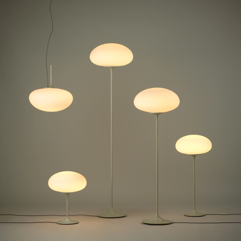 Créée en 1962 par le designer Bill Curry, Stemlite représentait une nouvelle typologie de luminaires, qui remplaçait la traditionnelle lampe composée d’un pied et d’un abat-jour, par une pièce tout en un, comprenant des modules interchangeables. Aujourd’hui rééditée par Gubi, près d’un demi-siècle plus tard, la collection, fidèle au design original, comprend deux lampes de table, deux lampadaires et une suspension, dans une palette de couleurs à la fois contemporaines et authentiques. Avec un passé dans l’aérospatial, Bill Curry s’est emparé de l’esprit de l’Amérique des années 60 et 70, depuis la conquête de l’espace jusqu’aux tendances pop, quand il monte son propre studio à Los Angeles en 1962, Design Line. Il imagine alors de nouvelles normes, rendues possibles par les technologies émergentes, et conçoit des collections de luminaires innovantes, audacieuses et colorées adaptées à une nouvelle ère. La collection Stemlite s’inspire des tiges de fleurs, à la fois minces et robustes. Ainsi, le luminaire est doté d’une base en métal moulé, évoquant une tige de tulipe, sur laquelle est montée un globe en verre soufflé et d’un interrupteur très simple de forme cylindrique. Grâce à sa cohérence visuelle, la collection Stemlite permet de combiner les différents modèles de luminaires dans les espaces résidentiels, collectifs ou commerciaux. La forme organique des luminaires s’intègre aussi bien dans des intérieurs audacieux et modernes, que dans des environnements plus classiques.