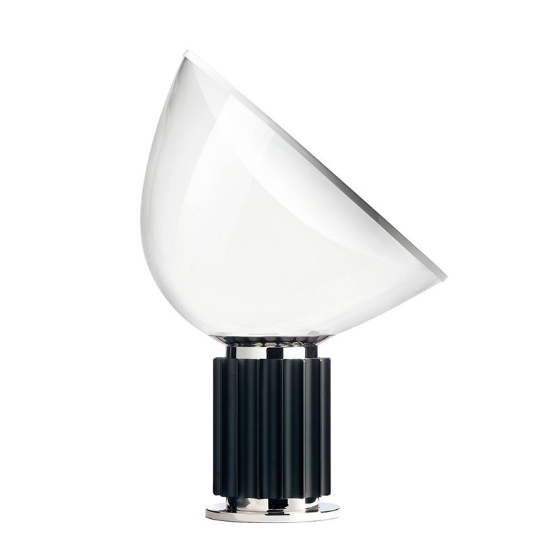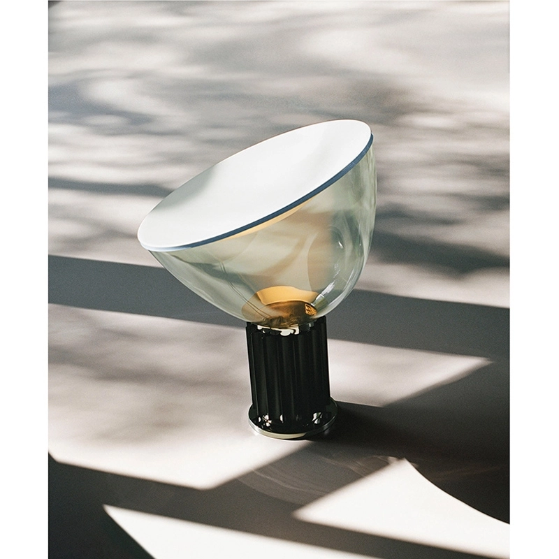 La lampe Taccia est une icône du design, conçue par les frères Castiglioni pour Flos et produite pour la première fois en 1962. Cette lampe de table à lumière indirecte et réfléchie est constituée d'un réflecteur en métal verni posé sur un diffuseur orientable, lui-même en verre transparent soufflé à la bouche. La taille du diffuseur est volontairement disproportionnée par rapport au socle en aluminium noir, inspiré des colonnes antiques, sur lequel il est juste posé. En fonction de l'orientation du diffuseur, la lampe Taccia émet un éclairage large, ou plus concentré.
