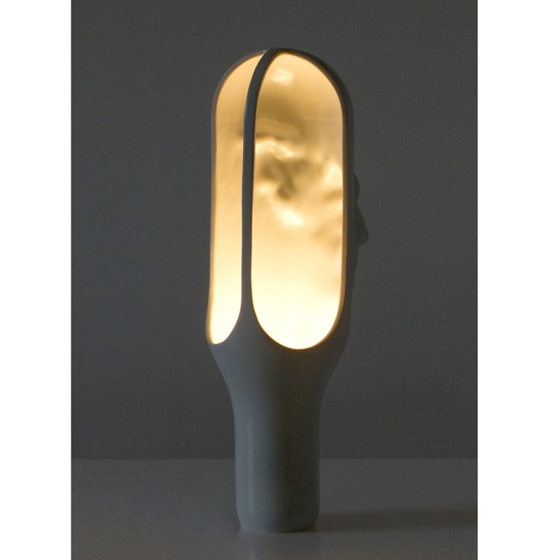 Véritable sculpture lumineuse, The Cave est une lampe à poser dessinée par le jeune designer Benjamin Graindorge pour Moustache. Atypique et poétique, The Cave est réalisée en céramique émaillée, et est à mi chemin entre art et design. Les différents reliefs donnent l'impression d'une grotte à l'intérieur et la lumière accentue les différentes formes organiques moulées. Eteinte, The Cave impose son allure sculpturale, et allumée, elle se révèle d'une manière différente jouant avec les pleins et les vides sur le bahut du salon.