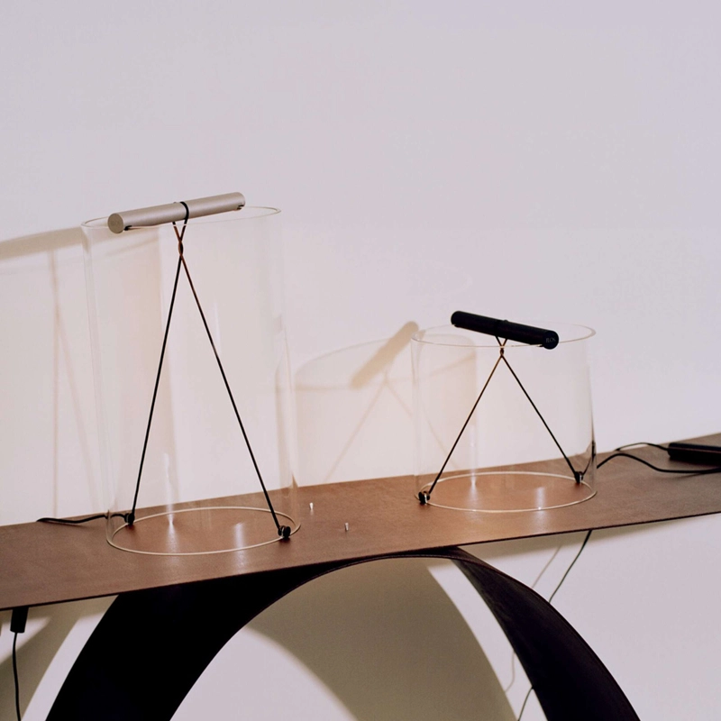 Disponible en trois tailles, la lampe To-Tie Flos est composée d’un corps cylindrique en verre transparent et d’une poignée en aluminium qui fait également office d’émetteur de lumière. Le diffuseur à LED multiples en polycarbonate blanc est spécialement conçu pour éviter l’éblouissement et l’effet Multi Shadow.