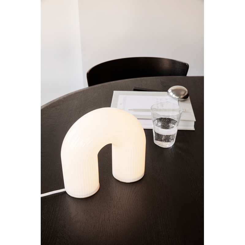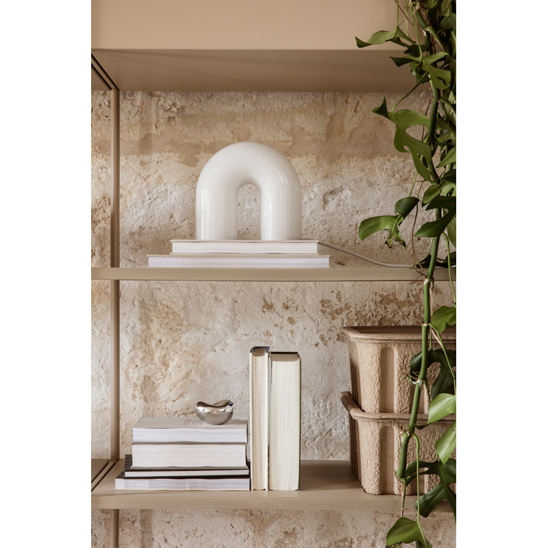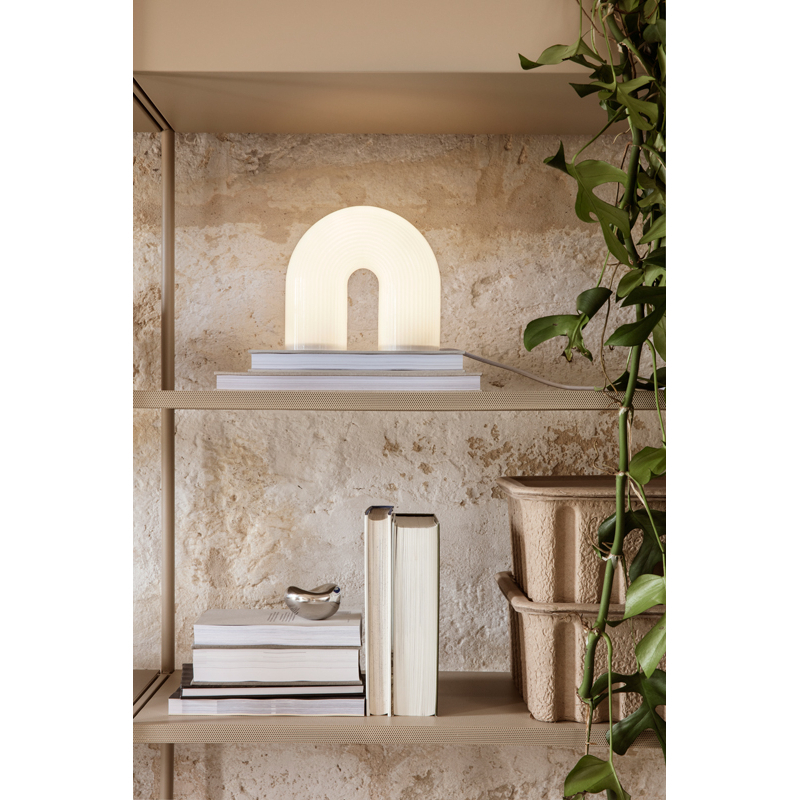 Editée par Ferm Living, Vuelta est une lampe audacieuse formée par un arc sculptural qui rappelle les colonnes anciennes. Elle est réalisée en verre opalin avec une surface striée qui donne un aspect tactile à la pièce. La source lumineuse LED émet une lumière douce et diffuse qui peut être modulée selon les besoins, pour un contrôle optimal de l’ambiance voulue. Fonctionnelle et séduisante, la lampe à poser Vuelta de Ferm Living apporte une touche lumineuse dans un coin sombre ou éclaire une collection de livres sur une étagère.