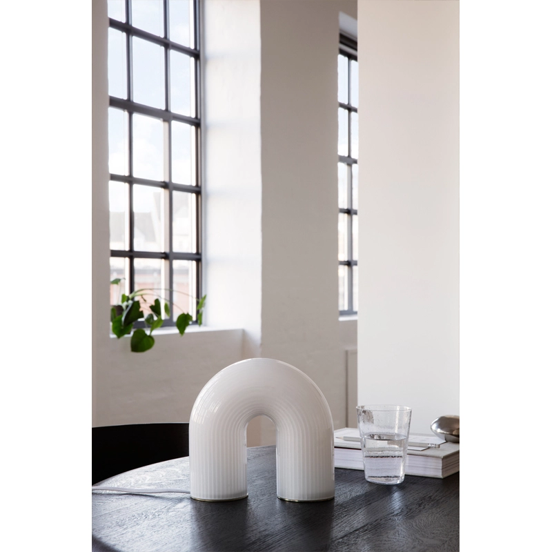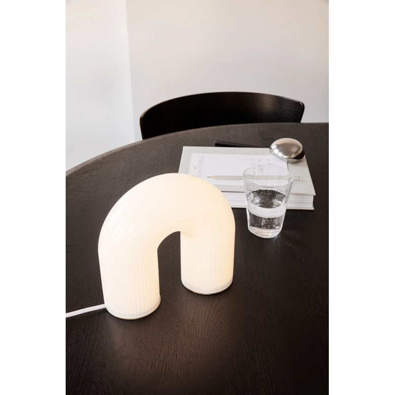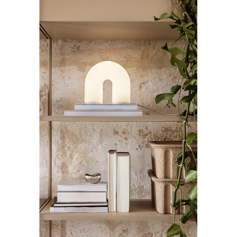Editée par Ferm Living, Vuelta est une lampe audacieuse formée par un arc sculptural qui rappelle les colonnes anciennes. Elle est réalisée en verre opalin avec une surface striée qui donne un aspect tactile à la pièce. La source lumineuse LED émet une lumière douce et diffuse qui peut être modulée selon les besoins, pour un contrôle optimal de l’ambiance voulue. Fonctionnelle et séduisante, la lampe à poser Vuelta de Ferm Living apporte une touche lumineuse dans un coin sombre ou éclaire une collection de livres sur une étagère.