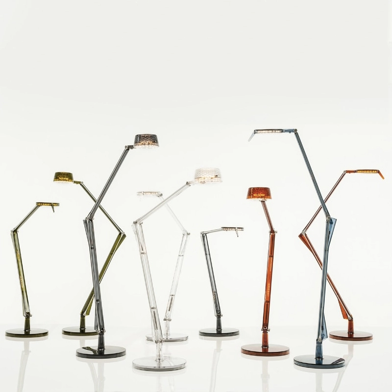 Conçues par le duo Alberto & Francesco Meda, les lampes Aledin ont été pensées pour convenir parfaitement aux bureaux et aux intérieurs domestiques. Elles se différencient par leur diffuseur : TEC et DEC. Aledin TEC est dotée d’une tête plate permettant d’obtenir un faisceau de lumière à la fois direct ou indirect grâce à son diffuseur articulé et la version Aledin DEC, quant à elle, se distingue par son diffuseur conique orné d’une décoration facettée. Les deux bras articulés en polycarbonate composant la structure d'Aledin TEC se caractérisent par la présence de deux tiges en aluminium remplissant la fonction de conducteurs.  Aledin TEC assure un haut rendement lumineux et une présence légère.