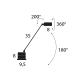 base : l 9,5 x h 8 cm, diffuseur : l 8 x h 3,5 cm, bras : h 35 cm