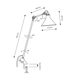 bras 59 cm, abat-jour 21 cm, serrage 4 cm