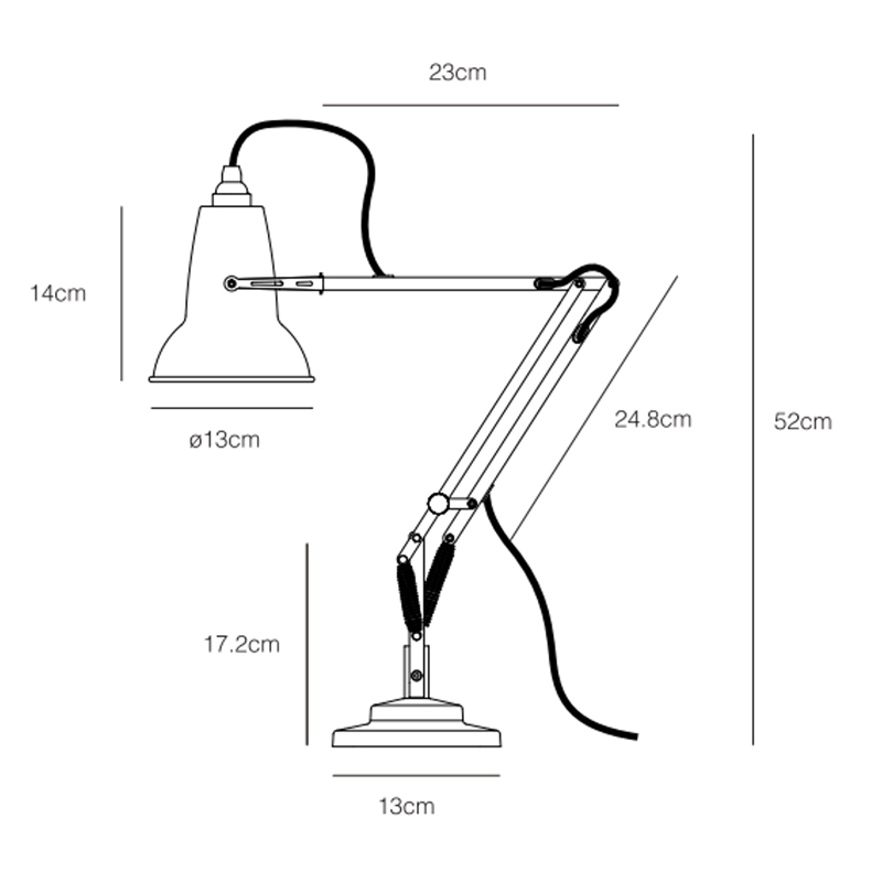 Lampe d'atelier conçue à l'origine par George Carwardine en 1932, puis développée pour les particuliers en 1934, la lampe Original 1227 a été rééditée en Janvier 2009 par le fabricant anglais Anglepoise pour son 75ème anniversaire. Cette version mini est polyvalente et s'adapte aussi bien à un petit bureau qu'à une table de chevet. Flexible et orientable grâce à ses bras articulés, avec 3 ressorts, cette lampe Original 1227 possède une base lestée pour plus de stabilité. Devenue une icône du design anglais, la lampe de bureau Original 1227 est présente sur les timbres de la Royal Mail.