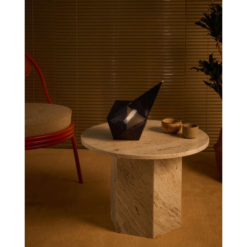 Conçue à l'origine en 1954, Bagdad est une lampe originale en métal perforé, matériau préféré de son designer, Mathieu Matégot. Construction cubiste aux multiples facettes avec une queue en forme de comète, le design sculptural de la lampe Bagdad s'est avéré intemporel grâce à son caractère unique et ludique. Rééditée par Gubi, la nouvelle version de Bagdad réduit la taille de moitié et ajoute un élément supplémentaire de polyvalence en le rendant portable Elle est équipée d’un variateur à trois niveaux de luminosité. La lampe portable Bagdad Gubi se déplace facilement dans toutes les pièces y apportant une lumière d’appoint chaleureuse.