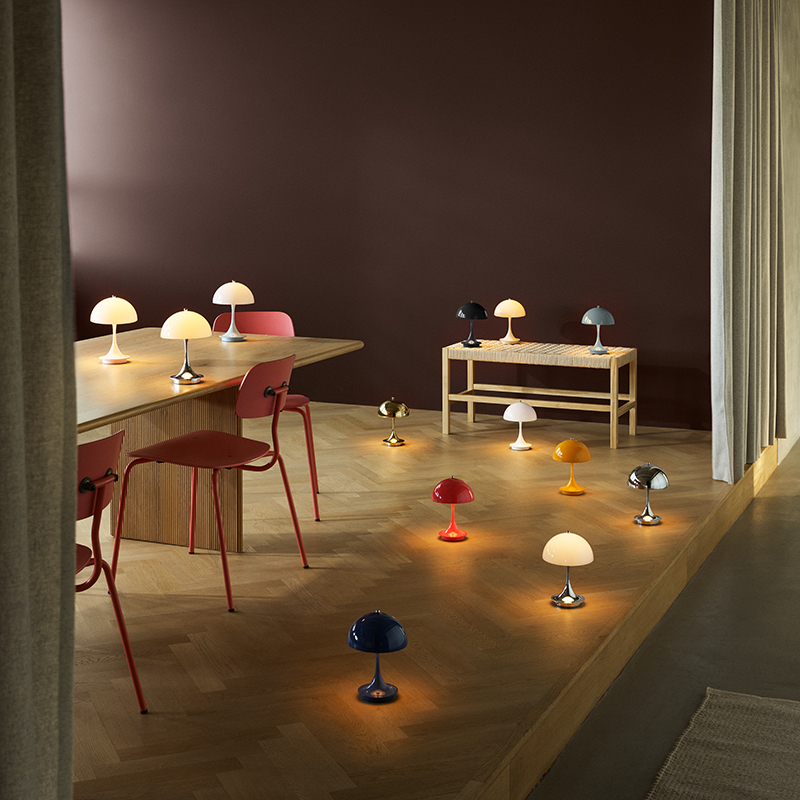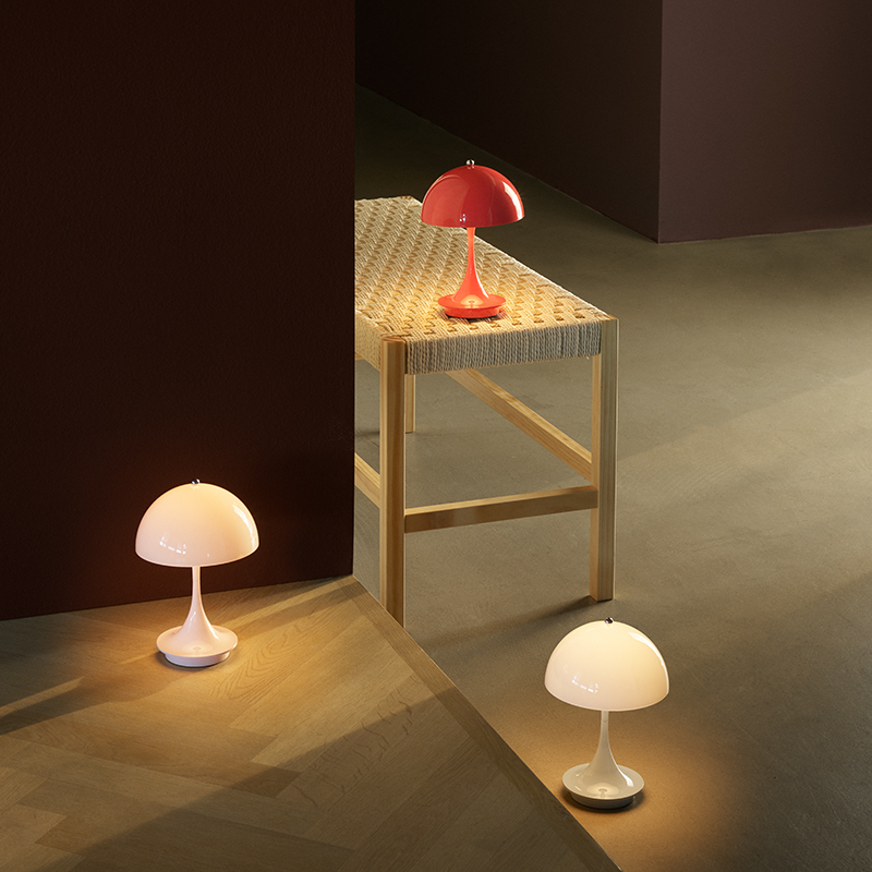 Panthella portable est une version réduite de la célèbre lampe de table Panthella. La lampe mesure seulement 160 mm de diamètre, ce qui en fait la taille parfaite pour la porter d’une pièce à l’autre ou à l’extérieur sur le balcon ou dans le jardin, où elle sera magnifique et créera une ambiance merveilleuse. Avec la Panthella, Verner Panton souhaitait créer une lampe dont le socle et l’abat-jour faisaient office de réflecteur, en faisant appel aux formes organiques qui ont fait sa réputation. Panton a réussi à fabriquer la lampe Panthella avec Louis Poulsen en 1971. La forme caractéristique de la lampe et sa capacité à réfléchir la lumière douce de sa base en forme de trompette ont consolidé son statut d’icône du design. La lampe Panthella Portable V3 est fournie avec un câble USB-C, et propose trois niveaux de luminosité.