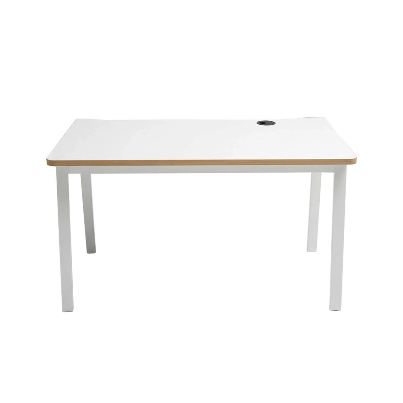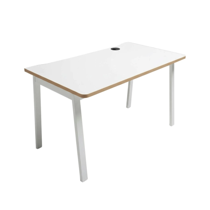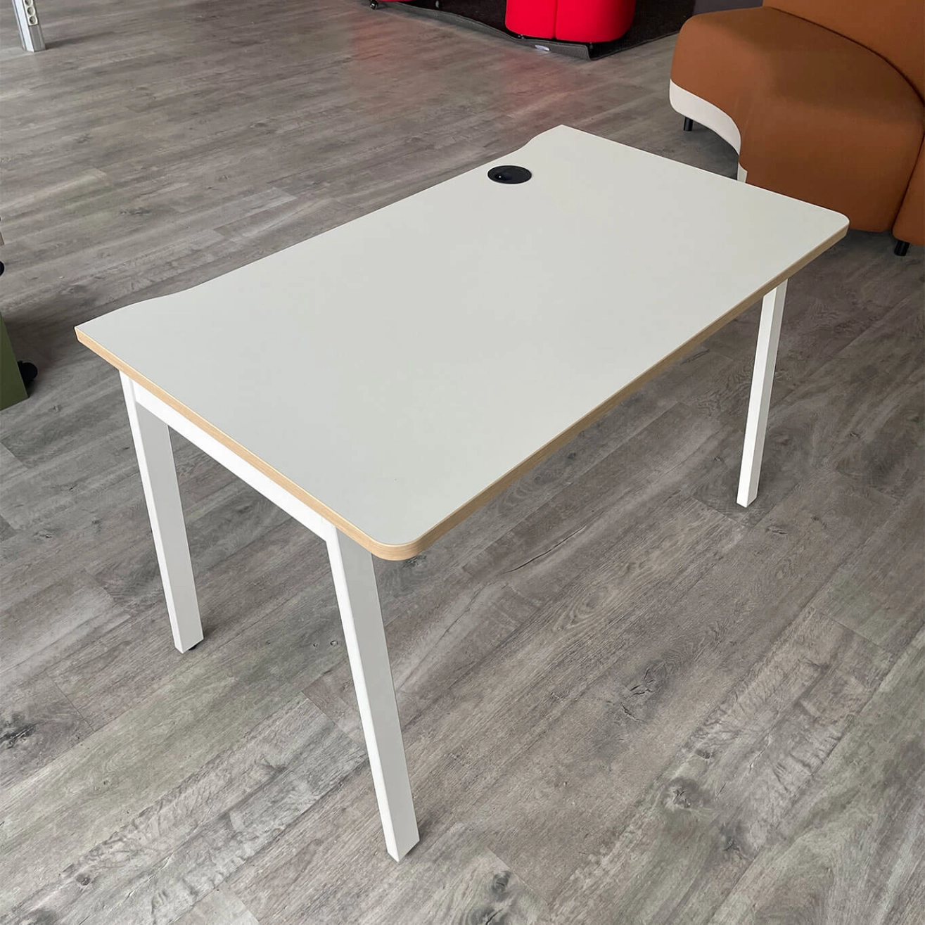 Plateau mélaminé standard, piètement Aero, finition métal standard Blanc 91, angles extérieurs arrondis chants Napoli chêne