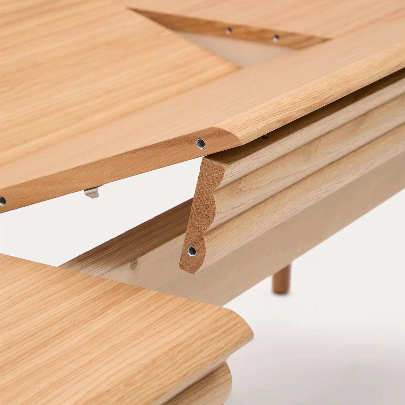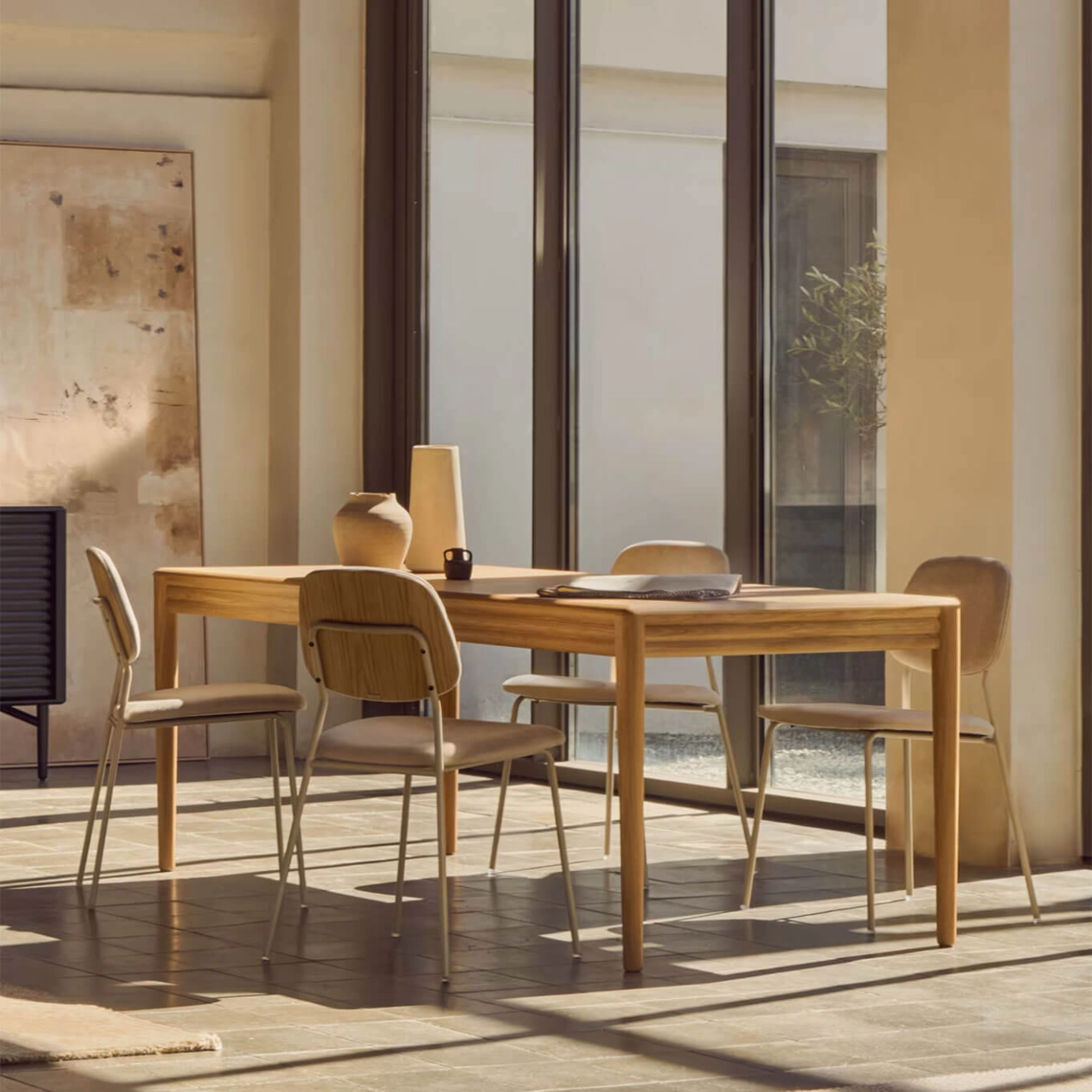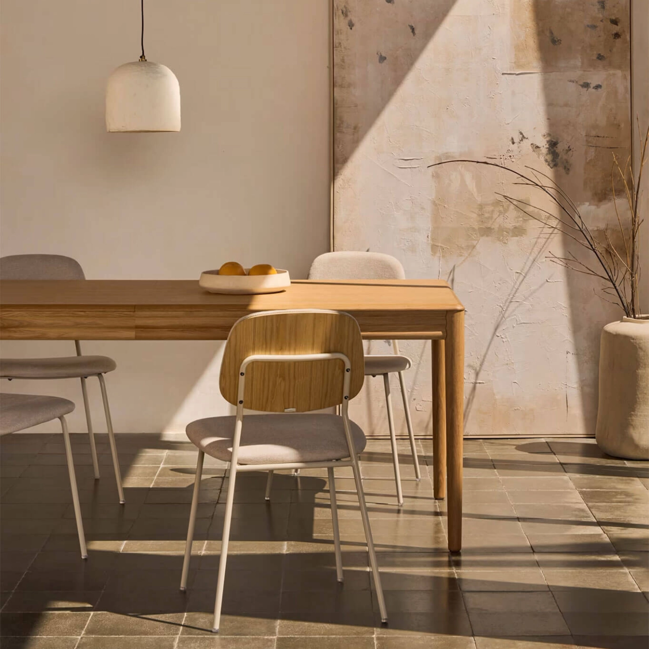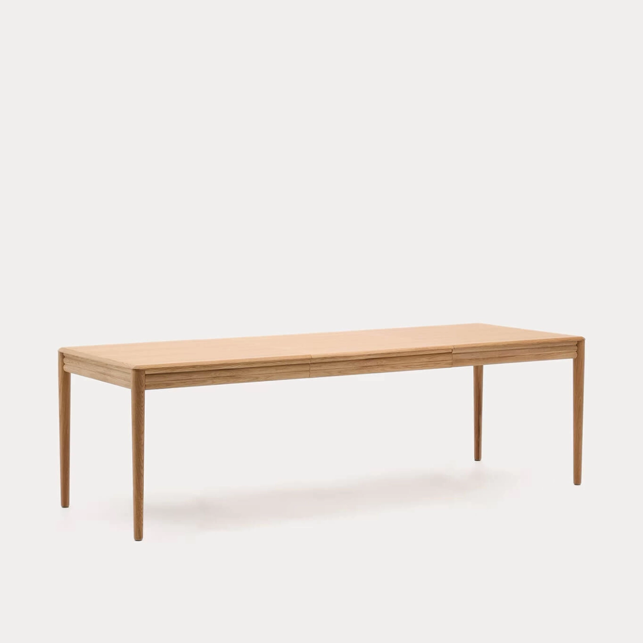 Lenon, conçue par Reverse Consultancy en exclusivité pour Kave Home, est une table extensible en placage et bois de chêne, appartenant à la collection Lenon. Avec ses bords arrondis et les reliefs délicats de ses portes, cette collection allie élégance et polyvalence, et s’intègre parfaitement dans des intérieurs modernes et chaleureux. La table de salle à manger Lenon dispose d’un système extensible « papillon » de 40 cm, permettant d’optimiser l’espace selon vos besoins. Son plateau en placage et ses pieds en bois de chêne avec finition naturelle témoignent de la qualité et de la finesse de conception qui caractérisent chaque détail de cette pièce. Réalisée en placage de chêne et bois certifié FSC MIX Credit, la collection Lenon est fabriquée en Europe et pensée pour durer. Alliant design raffiné, fonctionnalité et matériaux nobles, elle crée une table élégante et pratique, parfaite pour tous vos espaces de vie.