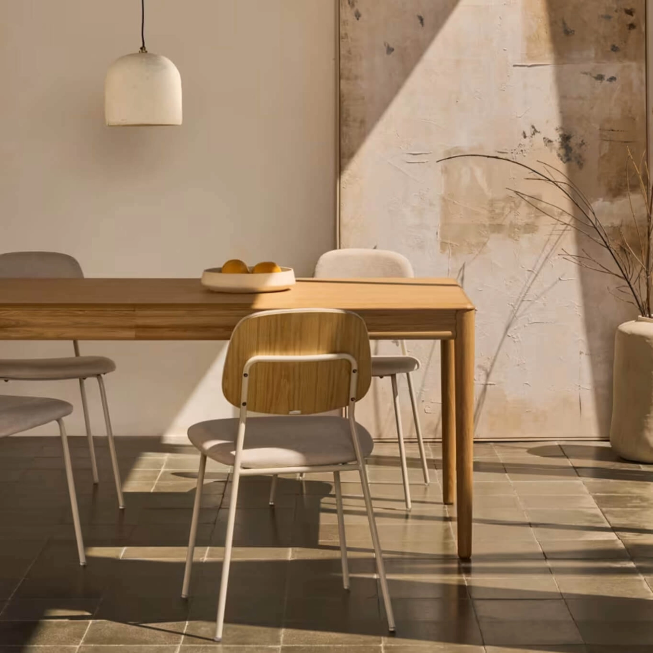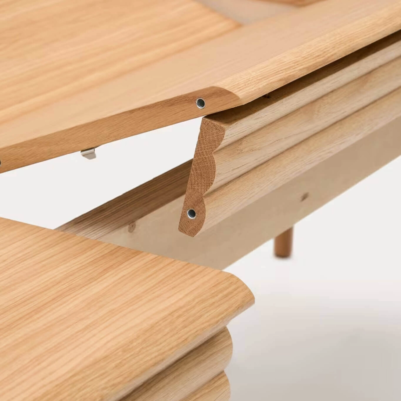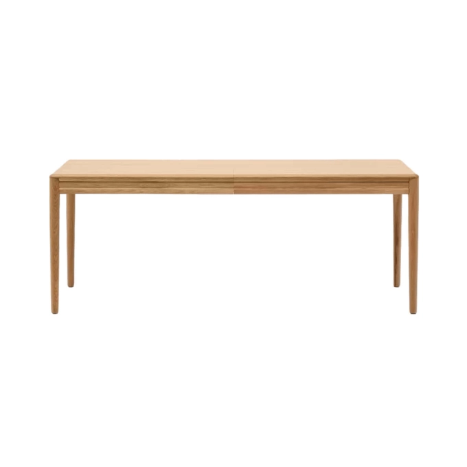 Lenon, conçue par Reverse Consultancy en exclusivité pour Kave Home, est une table extensible en placage et bois de chêne, appartenant à la collection Lenon. Avec ses bords arrondis et les reliefs délicats de ses portes, cette collection allie élégance et polyvalence, et s’intègre parfaitement dans des intérieurs modernes et chaleureux. La table de salle à manger Lenon dispose d’un système extensible « papillon » de 80 cm, permettant d’optimiser l’espace selon vos besoins. Son plateau en placage et ses pieds en bois de chêne avec finition naturelle témoignent de la qualité et de la finesse de conception qui caractérisent chaque détail de cette pièce. Réalisée en placage de chêne et bois certifié FSC MIX Credit, la collection Lenon est fabriquée en Europe et pensée pour durer. Alliant design raffiné, fonctionnalité et matériaux nobles, elle crée une table élégante et pratique, parfaite pour tous vos espaces de vie.