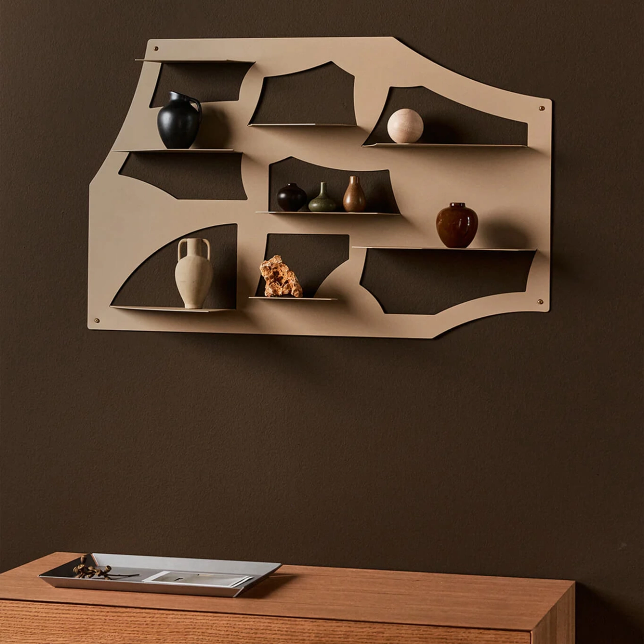 Leta de Ferm Living est une étagère murale unique conçue pour exposer de petits souvenirs, des objets design ou des bibelots. Inspirée du concept danois de « sættekasse », une boîte de présentation traditionnelle pour les petits objets, elle allie à la fois fonctionnalité et style. L’étagère est fabriquée en fer thermolaqué et présente des détails découpés au laser qui créent des formes complexes. Avec ses bords audacieux et sa présence architecturale, son design minimaliste en fait une pièce maîtresse surprenante sur n’importe quel mur.