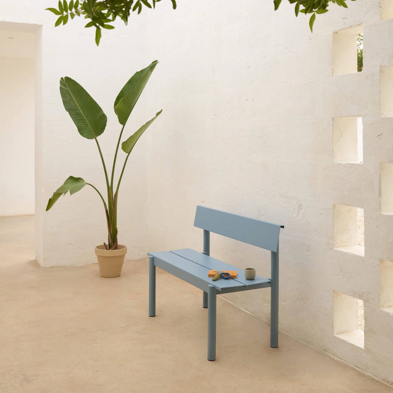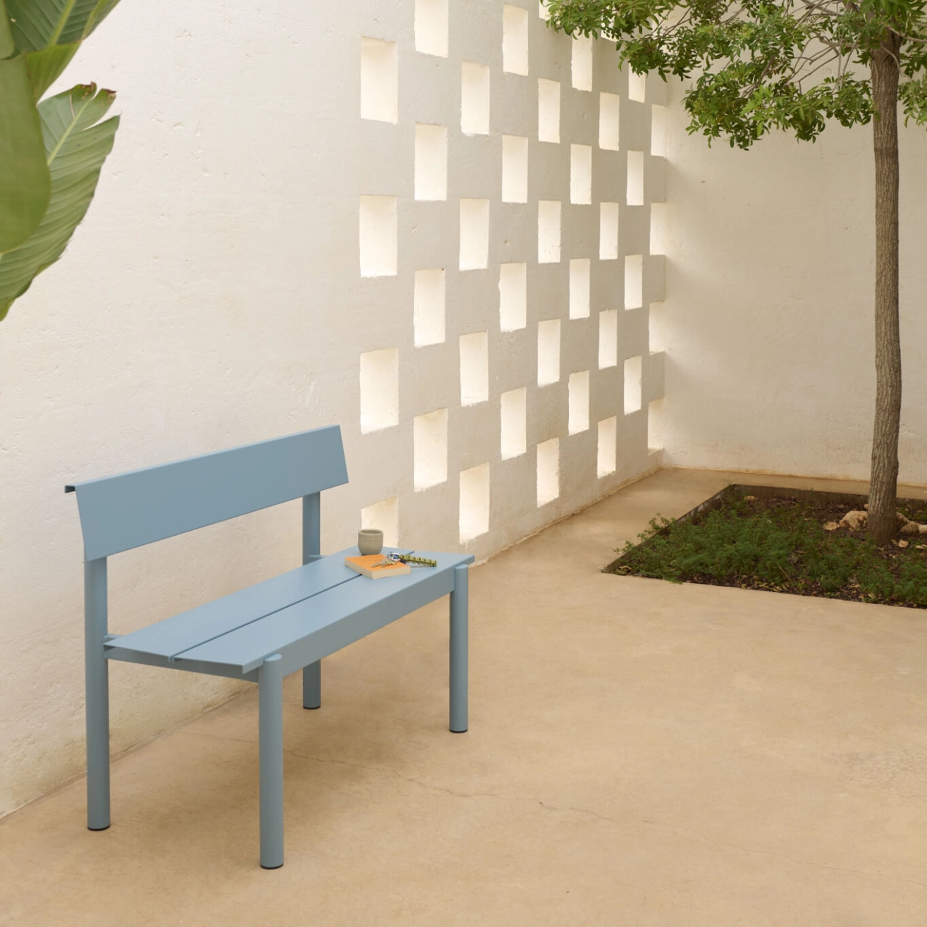 Banc extérieur LINEAR STEEL avec dossier L 110 Bleu pâle MUUTO