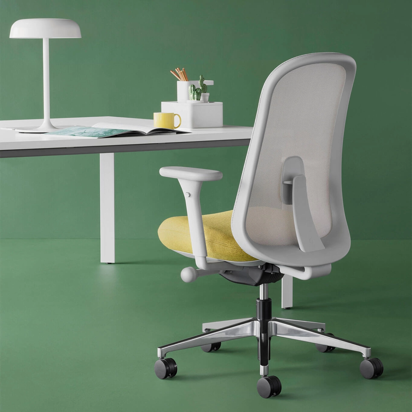 Le siège de bureau Lino Mineral, conçu par Sam Hecht et Kim Colin et édité par Herman Miller, propose une interprétation contemporaine et accessible de l’ergonomie professionnelle. Inspiré par plus de cinquante années de recherche et d’innovation, il reprend les fondamentaux des sièges de travail haute performance de la marque pour les rendre disponibles dans un design épuré et essentiel. Sa suspension respirante Duo offre un maintien précis et équilibré en répartissant intelligemment les tensions au niveau thoracique, lombaire et sacral. Associée à un coussin d’assise préformé, elle accompagne la colonne vertébrale sur toute sa longueur et favorise une posture naturelle, confortable et dynamique tout au long de la journée. Le siège intègre une hauteur prolongée, un mécanisme synchrone avec limiteur d’inclinaison et réglage de l’angle d’assise, ainsi qu’une profondeur d’assise ajustable pour s’adapter à chaque morphologie. Les accoudoirs entièrement réglables permettent un soutien personnalisé tandis que le support lombaire réglable avec soutien sacral renforce le confort dans toutes les positions. Reposant sur des roulettes de 65 mm adaptées aux sols durs comme aux moquettes, le siège de bureau Lino Mineral allie mobilité fluide, confort durable et esthétique sobre, répondant parfaitement aux exigences des environnements de travail contemporains.