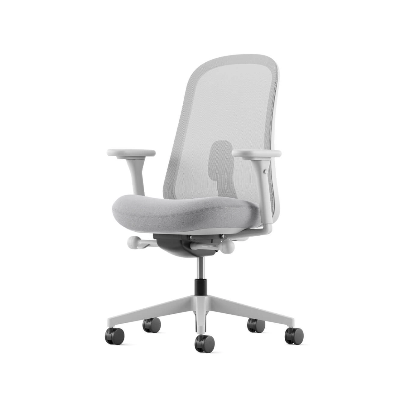 Le siège de bureau Lino Mineral, conçu par Sam Hecht et Kim Colin et édité par Herman Miller, propose une interprétation contemporaine et accessible de l’ergonomie professionnelle. Inspiré par plus de cinquante années de recherche et d’innovation, il reprend les fondamentaux des sièges de travail haute performance de la marque pour les rendre disponibles dans un design épuré et essentiel. Sa suspension respirante Duo offre un maintien précis et équilibré en répartissant intelligemment les tensions au niveau thoracique, lombaire et sacral. Associée à un coussin d’assise préformé, elle accompagne la colonne vertébrale sur toute sa longueur et favorise une posture naturelle, confortable et dynamique tout au long de la journée. Le siège intègre une hauteur prolongée, un mécanisme synchrone avec limiteur d’inclinaison et réglage de l’angle d’assise, ainsi qu’une profondeur d’assise ajustable pour s’adapter à chaque morphologie. Les accoudoirs entièrement réglables permettent un soutien personnalisé tandis que le support lombaire réglable avec soutien sacral renforce le confort dans toutes les positions. Reposant sur des roulettes de 65 mm adaptées aux sols durs comme aux moquettes, le siège de bureau Lino Mineral allie mobilité fluide, confort durable et esthétique sobre, répondant parfaitement aux exigences des environnements de travail contemporains.