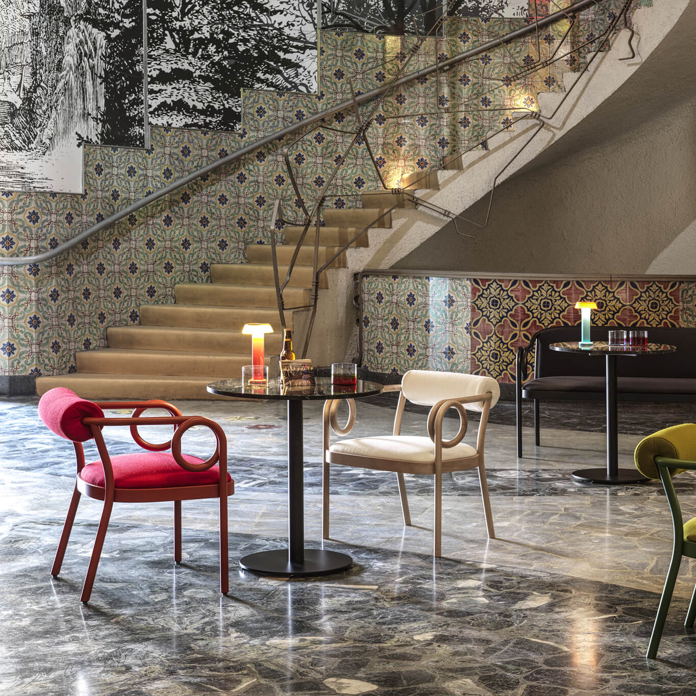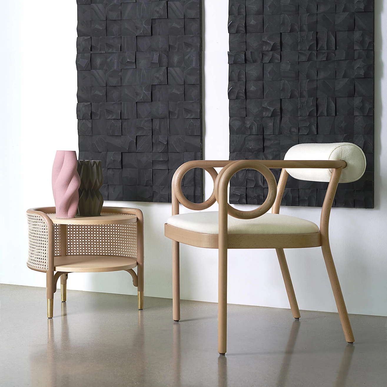 Gebrüder Thonet Vienna nait d’une famille de producteurs de meubles à succès pendant l’ère industrielle. Michael Thonet, fondateur, travaille le bois et passe de la technique du bois lamellé collé à celle du bois de section ronde courbé à la vapeur. Élégance formelle, solidité et légèreté ont déterminé le succès de Gebrüder Thonet Vienna, qui en quelques années a ouvert des sites de production dans le monde entier. Un processus de production unique qui est enraciné dans une histoire riche d’influences