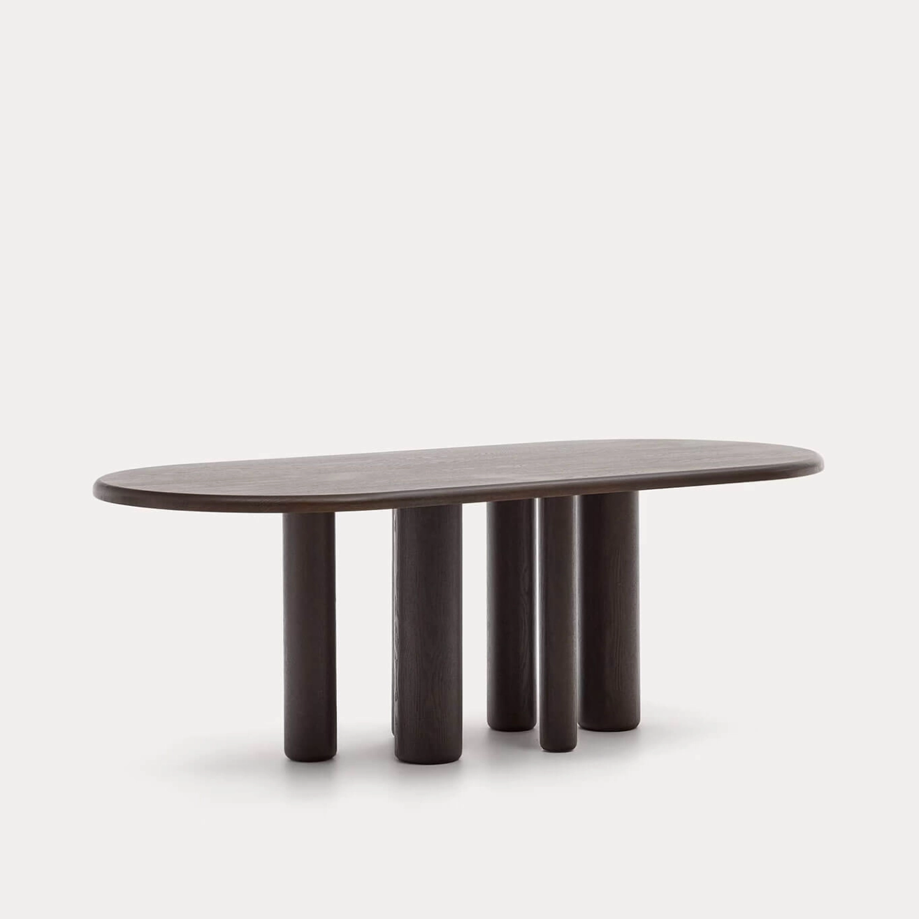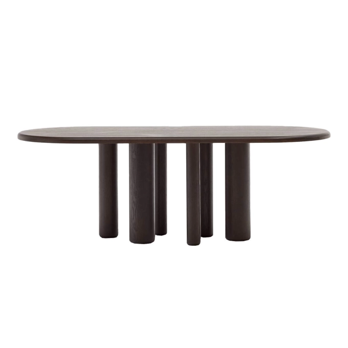 Mailen est une table ovale en contre-plaqué de frêne avec finition foncée. Elle fait partie de la collection Mailen de Kave Home, qui allie artisanat, histoire et design durable. Inspirée des meubles classiques à volet roulant à tambour du XVIIIe siècle, Mailen conserve les portes coulissantes en lattes de bois massif, offrant un contraste de formes et de volumes en accord avec les tendances actuelles. Sa conception contemporaine se distingue par des pieds de diamètres différents, tandis que l’utilisation de matériaux naturels rend chaque table unique, avec ses propres tonalités et textures. Fabriquée en bois manufacturé E0 à faibles émissions de formaldéhyde, elle contribue à un intérieur plus sain et respectueux de l’environnement. Ce design exclusif, créé par l’équipe de Kave Home, fait de la table Mailen la pièce maîtresse de votre salon, alliant esthétisme, fonctionnalité et caractère intemporel.
