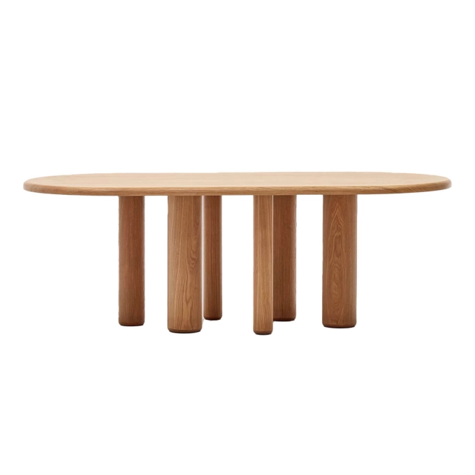 Mailen est une table ovale en contre-plaqué de frêne avec finition naturelle. Elle fait partie de la collection Mailen de Kave Home, qui allie artisanat, histoire et design durable. Inspirée des meubles classiques à volet roulant à tambour du XVIIIe siècle, Mailen conserve les portes coulissantes en lattes de bois massif, offrant un contraste de formes et de volumes en accord avec les tendances actuelles. Sa conception contemporaine se distingue par des pieds de diamètres différents, tandis que l’utilisation de matériaux naturels rend chaque table unique, avec ses propres tonalités et textures. Fabriquée en bois manufacturé E0 à faibles émissions de formaldéhyde, elle contribue à un intérieur plus sain et respectueux de l’environnement. Ce design exclusif, créé par l’équipe de Kave Home, fait de la table Mailen la pièce maîtresse de votre salon, alliant esthétisme, fonctionnalité et caractère intemporel.