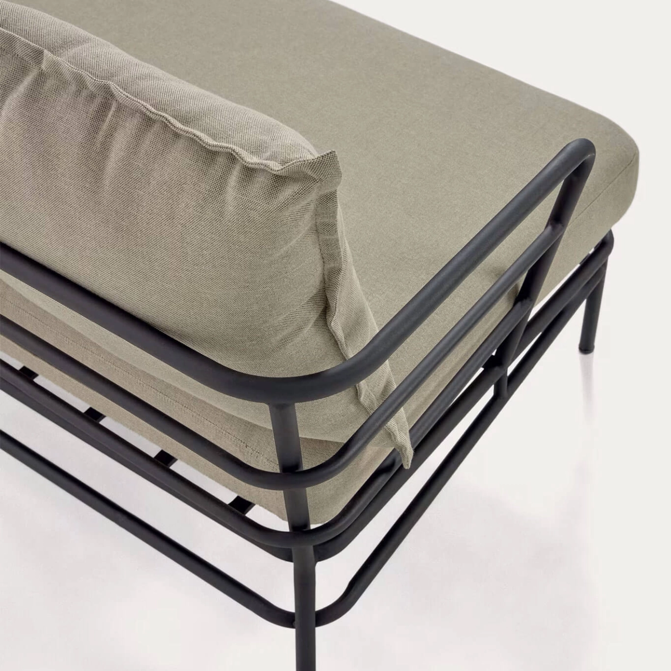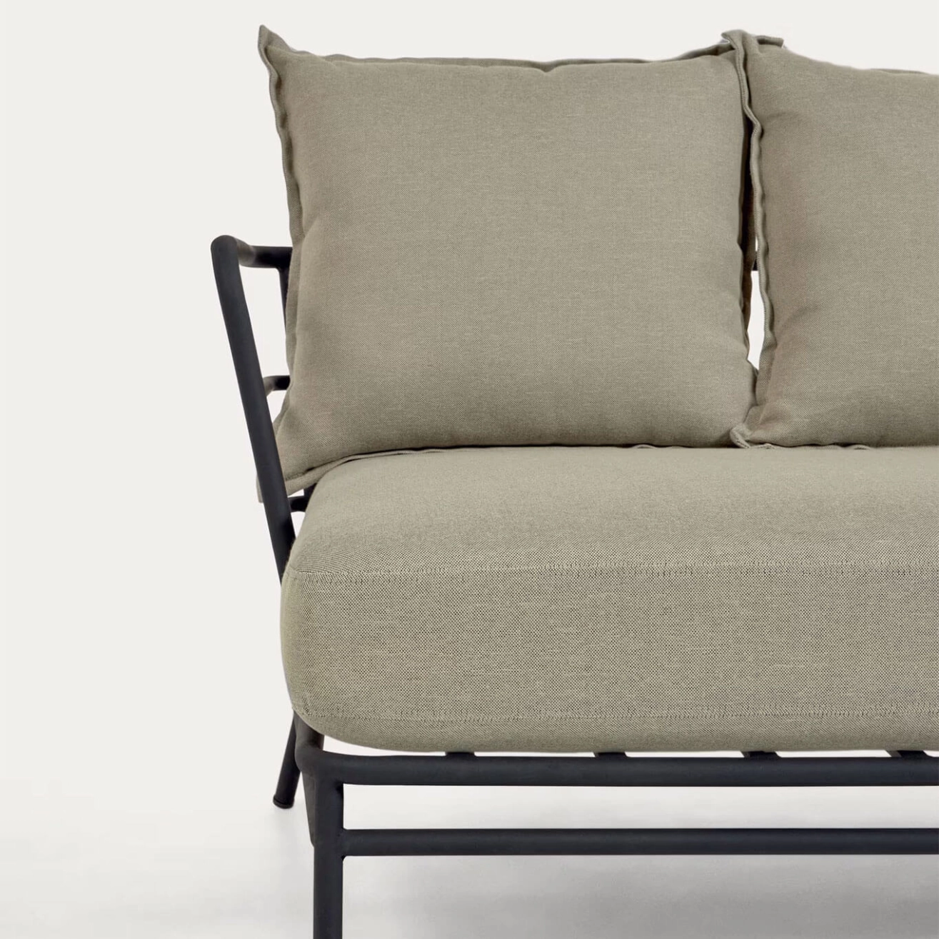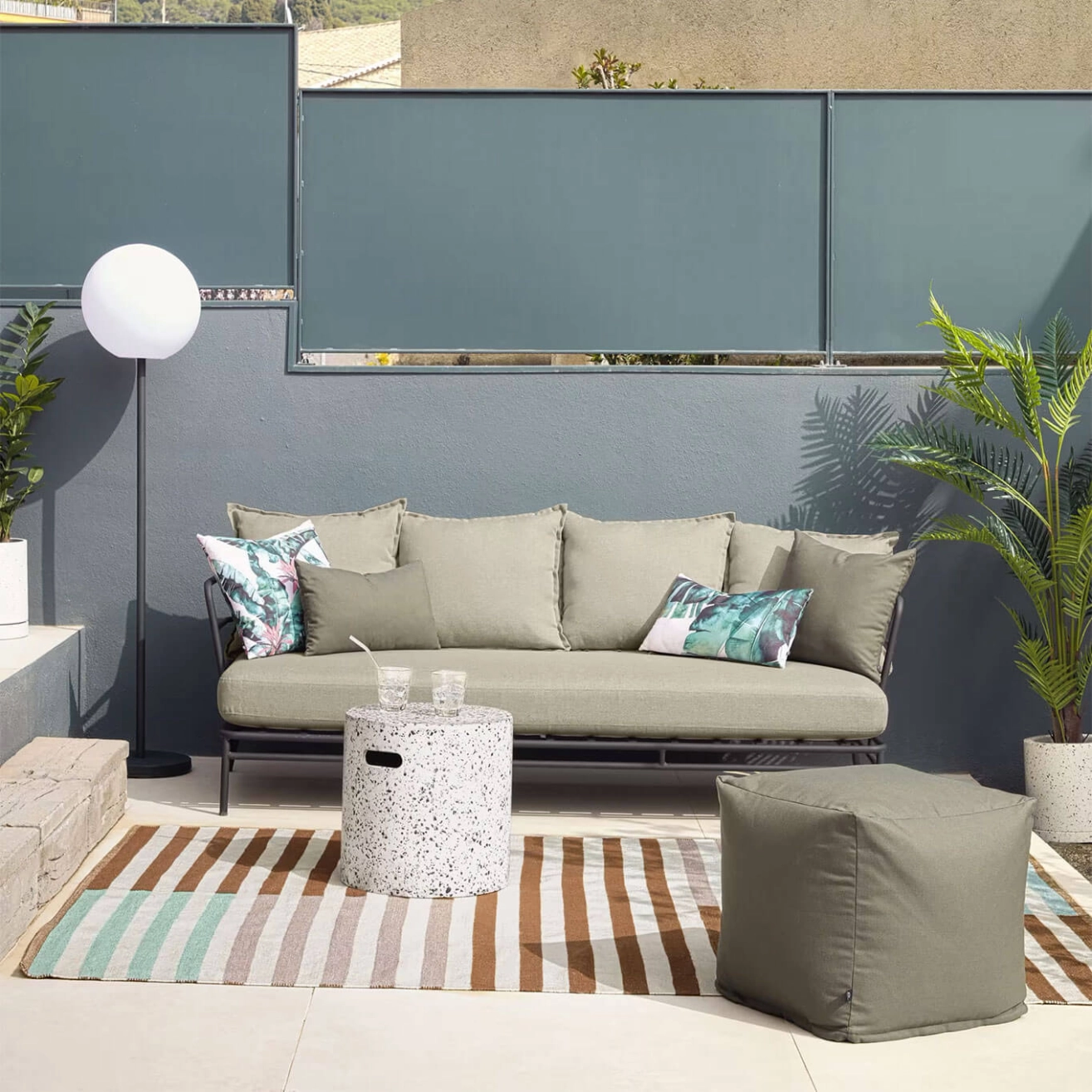 Mareluz, qui comprend également un fauteuil assorti. Livré déjà monté, ce canapé est prêt à l’usage dès sa réception. Sa structure en acier galvanisé peint en noir résiste aux rayons UV, à l’oxydation et à la corrosion, ce qui le rend idéal pour un usage en extérieur sous couvert. Alliant confort et design, ce canapé léger et épuré apporte luminosité et sensation d’espace, invitant à la détente. Il est livré avec des coussins déhoussables, qu’il est recommandé de protéger en cas de pluie. L’acier est l’élément central de cette pièce, qui combine solidité, style et confort, et existe en plusieurs coloris pour s’adapter à tous les espaces extérieurs.