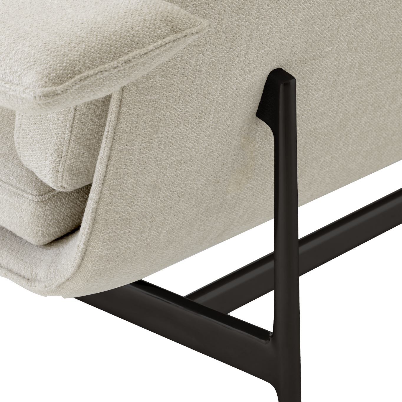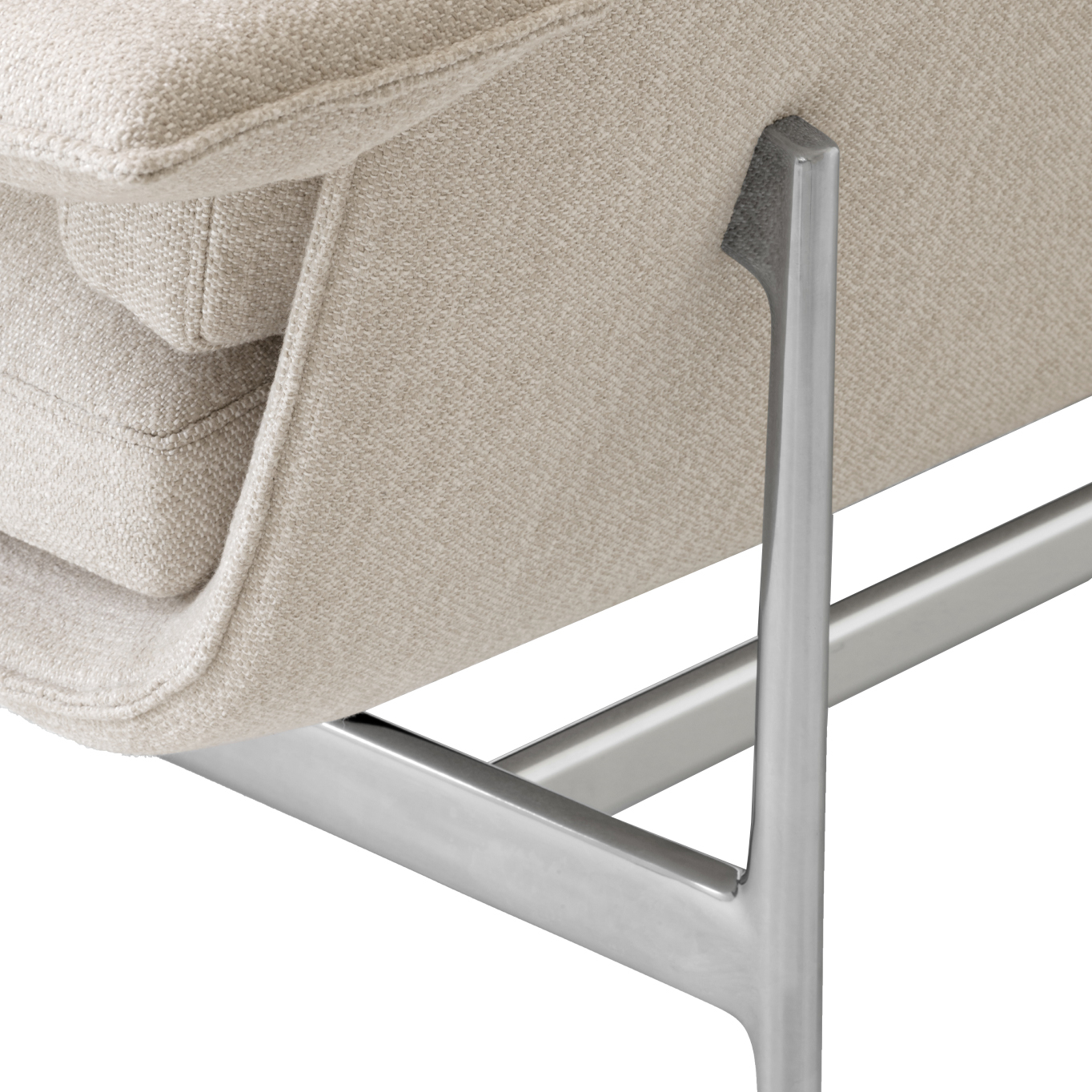 Structure en contreplaqué, mousse, ouate de polyester, revêtement tissu, pieds aluminium