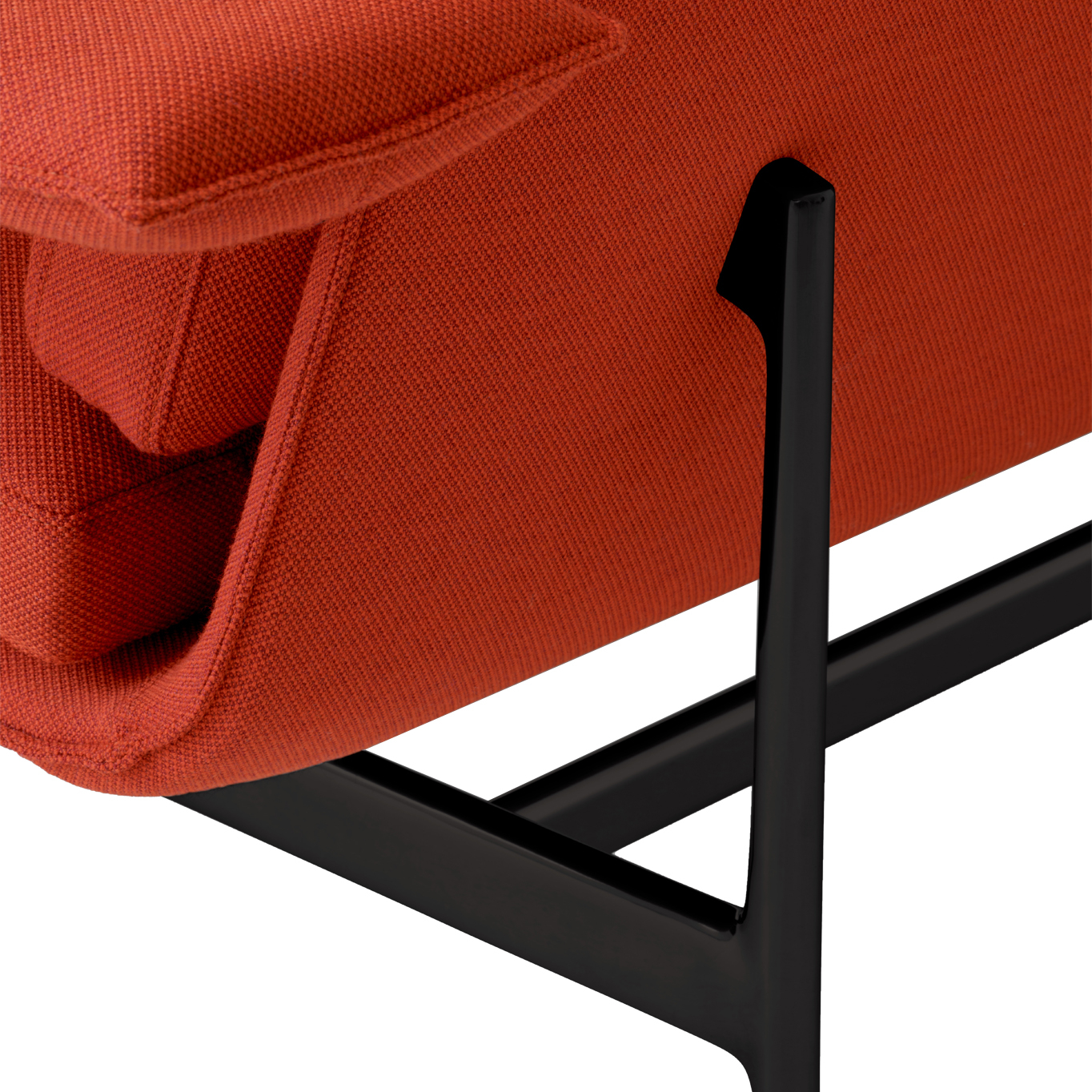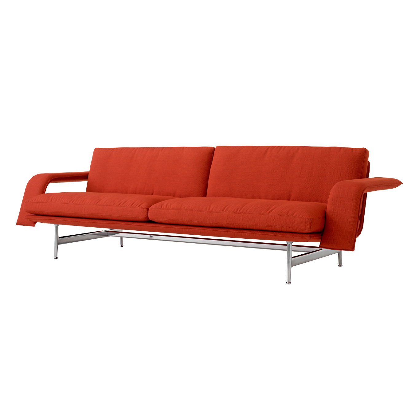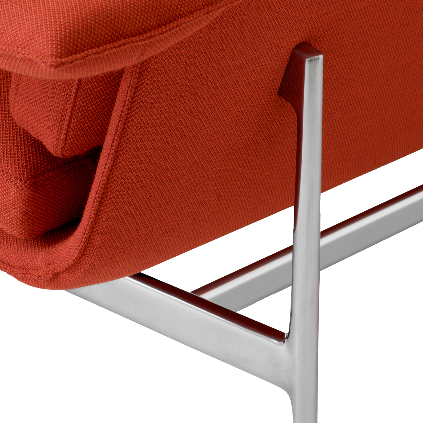 Structure en contreplaqué, mousse, ouate de polyester, revêtement tissu, pieds aluminium