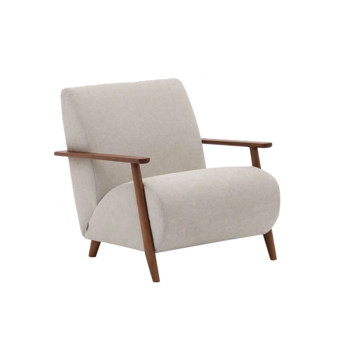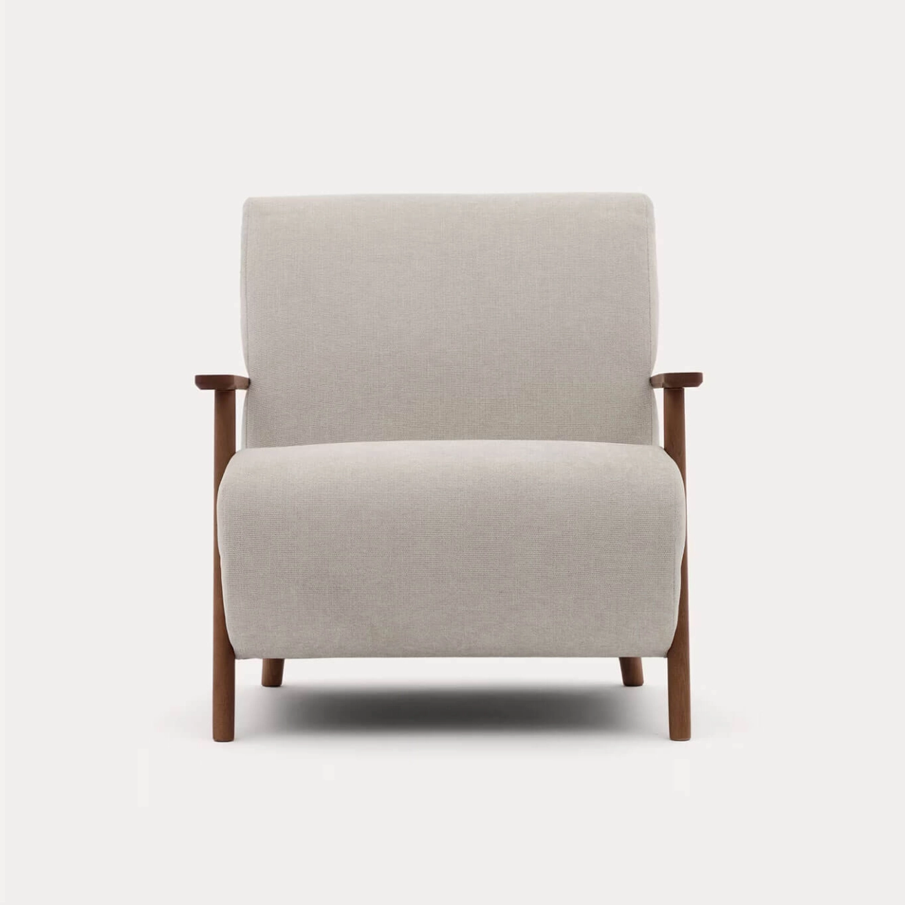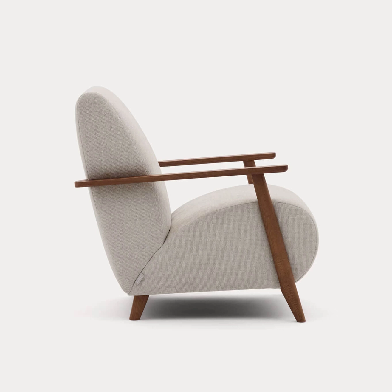 Fauteuil MEGHAN Chenille Perle / Frêne finition Noyer KAVE HOME
