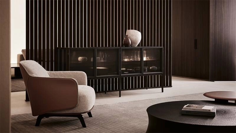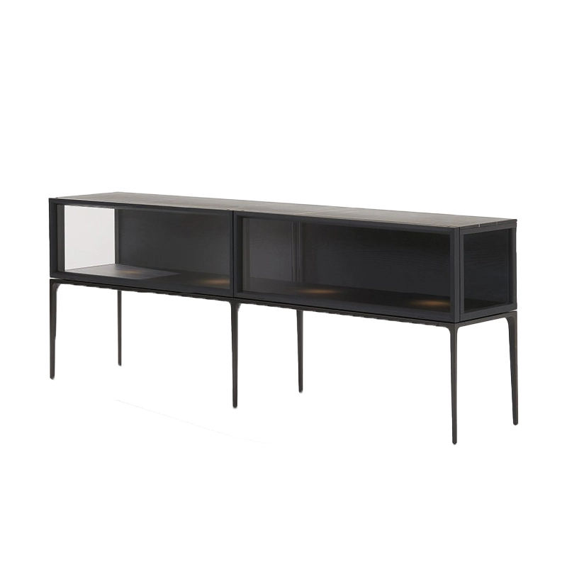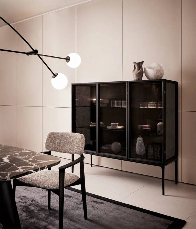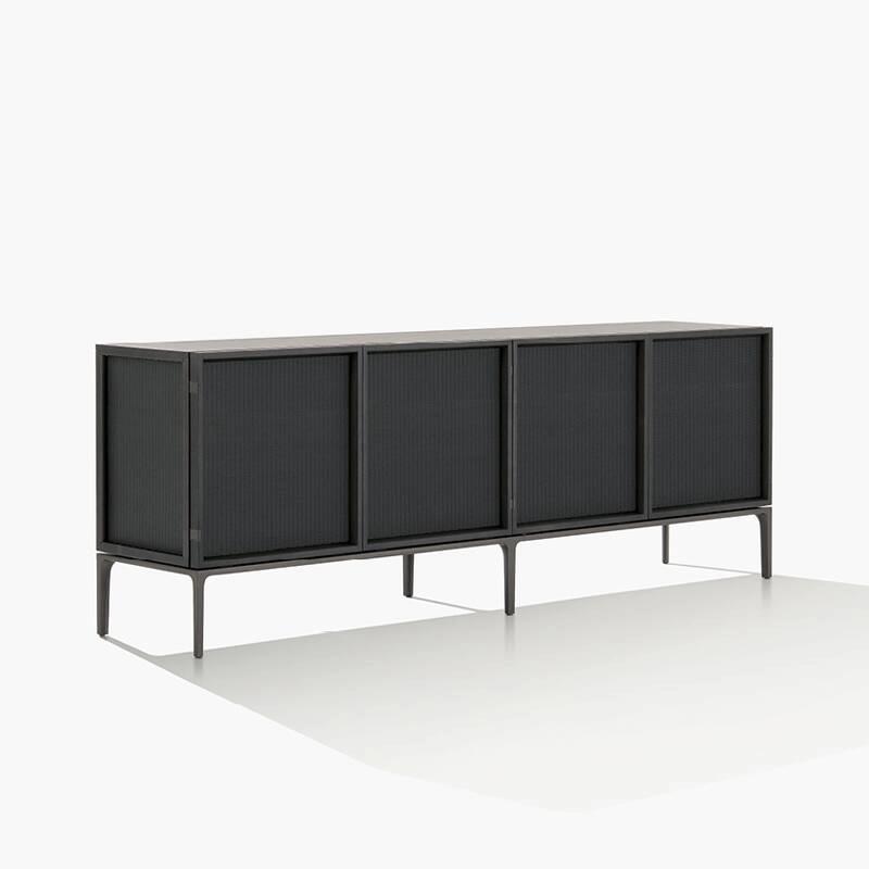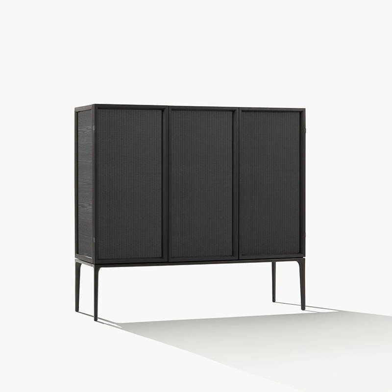 Edité par Poliform, Aiko est un système de buffets aux lignes essentielles et aux détails recherchés. L’intuition de Jean-Marie Massaud a donné naissance à un projet qui est un véritable condensé du savoir entrepreneurial. Inspirés des anciens bahuts, les buffets sont perchés sur un piètement qui ne fait qu’un avec les portes profilées. Une très grande attention est portée au détail: des étagères qui semblent flotter à l’intérieur du volume grâce aux supports intégrés et un éclairage au style recherché; un pied central qui devient une particularité esthétique à la charnière développée ad hoc, à laquelle correspond une jolie plaque métallique extérieure. Les finitions des portes sont également particulières: outre le bois classique, on trouve un bois effet osier et un verre feuilleté avec un intérieur en tissu effet lin.