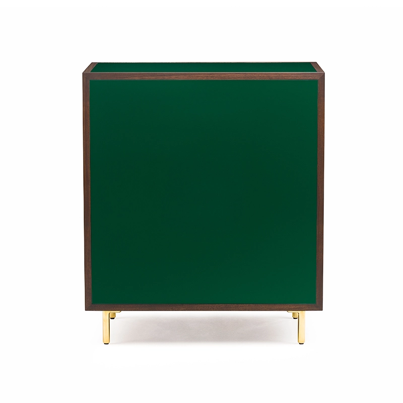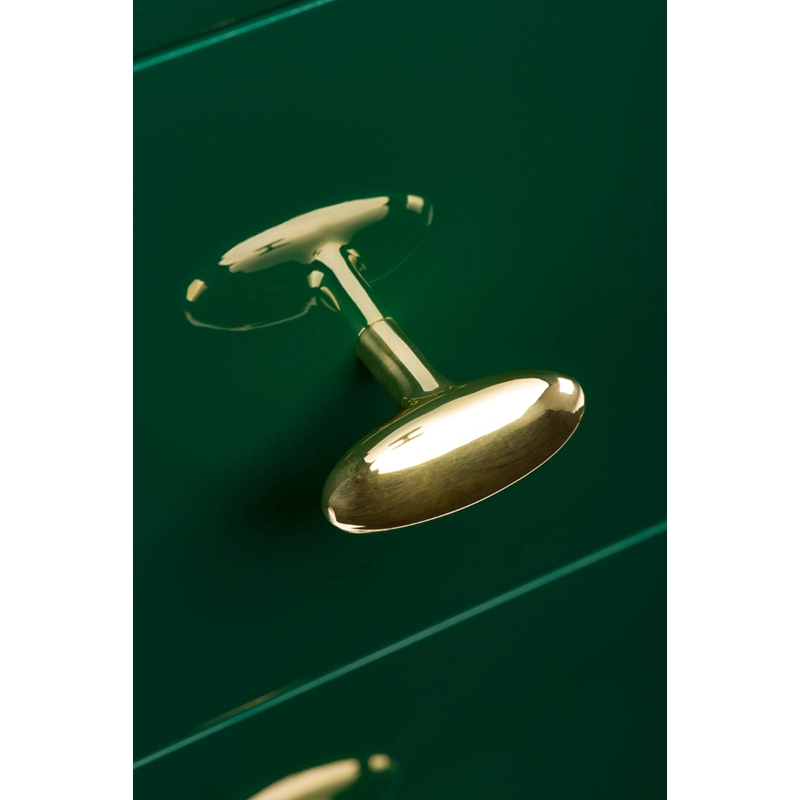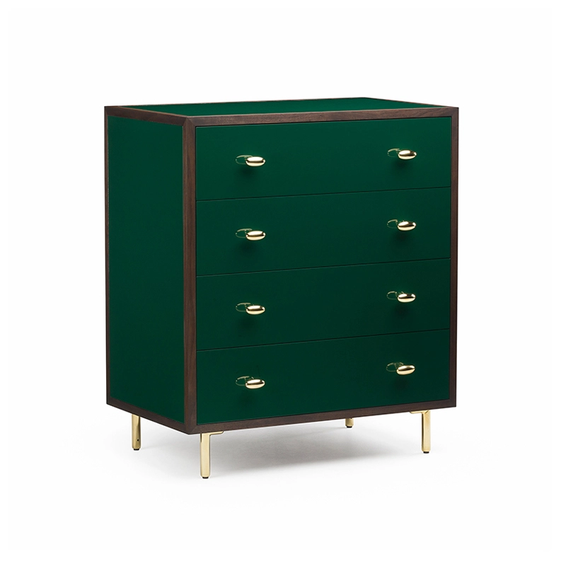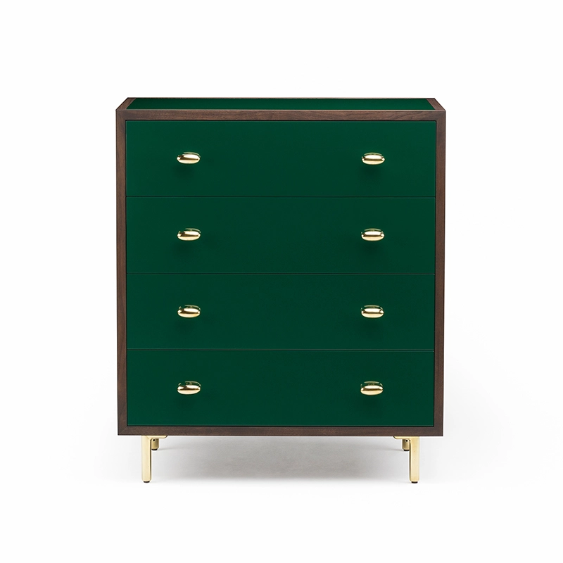 Inspiré par la juxtaposition de l'ancien et du nouveau design vu dans les brownstones convertis de Brooklyn, la commode Classon est moderne avec des références historiques. Les poignées et les pieds de tiroir en bronze poli complètent élégamment le corps de l'armoire disponible en HDF peint et dans une gamme de bois et de finitions. Quatre tiroirs, détaillés avec une menuiserie et un mécanisme de fermeture en douceur, offrent une capacité de rangement généreuse. Classon fait partie d'une famille de meubles de rangement comprenant un chevet, un coffre bas et un buffet.