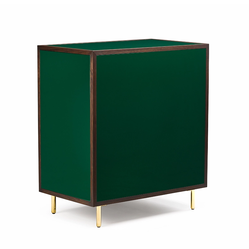 chêne ou noyer, hdf laqué brillant, pieds et poignées bronze poli