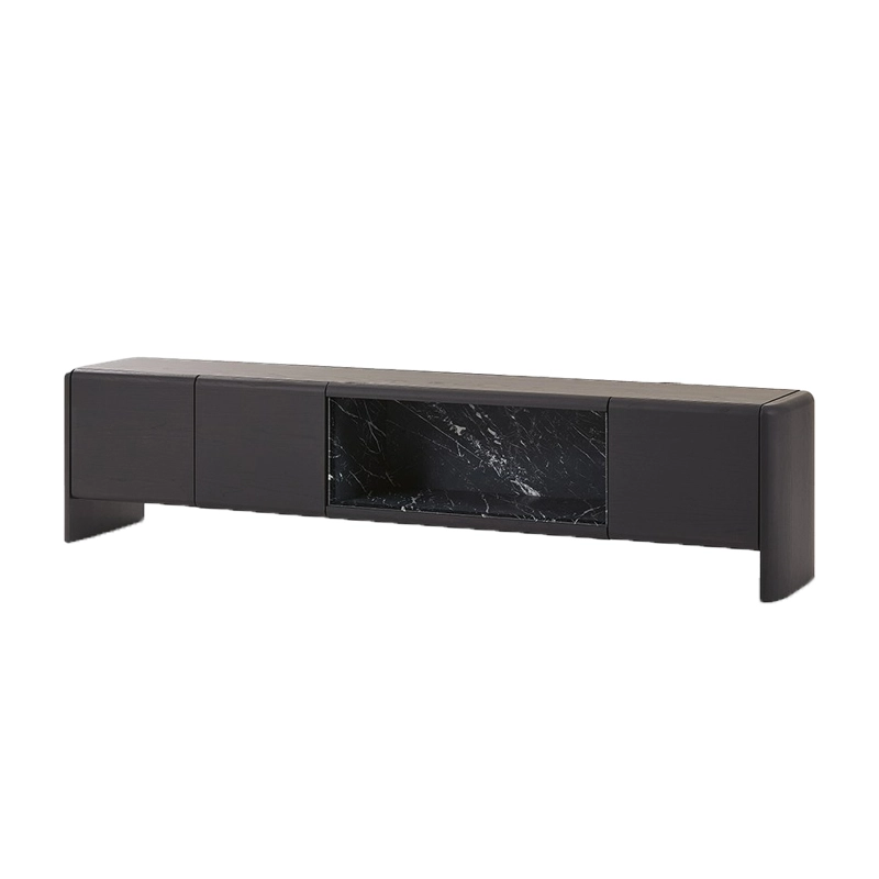 Duke est une collection de buffets dont les volumes, solides et imposants, sont allégés par des lignes courbes qui regardent le monde de l’ébénisterie et en général, un monde de finitions de grande valeur artisanale. Disponible en différentes hauteurs et dimensions, Duke se distingue dans l’espace jour par la présence imposante, mais également par les détails raffinés tels que le plateau avec des profils en métal et un fond en cuir à placer sur le plateau.