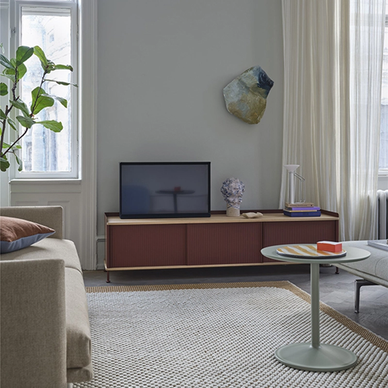 Avec la série de rangements Enfold, le designer Thomas Bentzen transpose les éléments à la fois industriels et naturels dans un meuble pour la maison. Fabriqué à partir d'acier laqué qui enveloppe élégamment le plateau et la base en chêne massif, le buffet Enfold fusionne des matériaux froids et chauds dans une expressions unique. Edité par MuutoEnfold combine le côté chaleureux du bois, faisant référence aux buffets classiques, avec l'aspect plus contemporains de la façade en acier laqué strié, pour un look industriel raffiné. La collection de meubles de rangement Enfold par Muuto se décline en quatre tailles, toutes équipées d'étagères ajustables et de sorties de câbles discrètes. Les meubles Enfold s'adaptent à vos espaces de vie comme console multimédia, meuble d'entrée ou encore comme buffet de rangement.