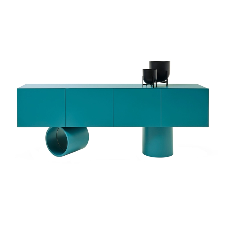 Créé par Claudio Bitetti et édité par Mogg, Giunone Model 2 est un buffet élégant qui allie les formes à la fonction. La structure de Giunone se compose d’un rangement en MDF dont la rigueur contraste à merveille avec les pieds cylindriques du buffet. Le buffet Giunone dispose de quatre portes et d'étagères internes en verre.