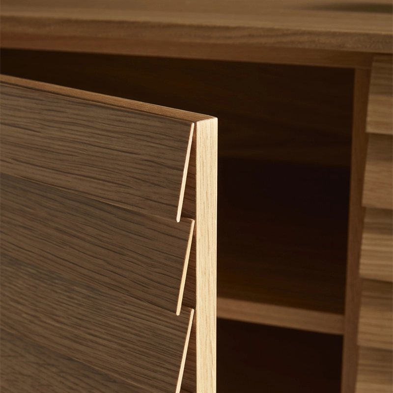 Le buffet Sussex au design original a été créé et imaginé par Terence Woodgate pour Punt Mobles. La structure en bois massif de Sussex possède des lames horizontales en partie frontale qui masquent les divisions et servent aussi de poignées aux portes et tiroirs. Les éléments de porte incluent des étagères réglables en hauteur. Sussex est un meuble idéal pour la décoration des bureaux et des pièces de réception, en tant que meuble de télévision par exemple.