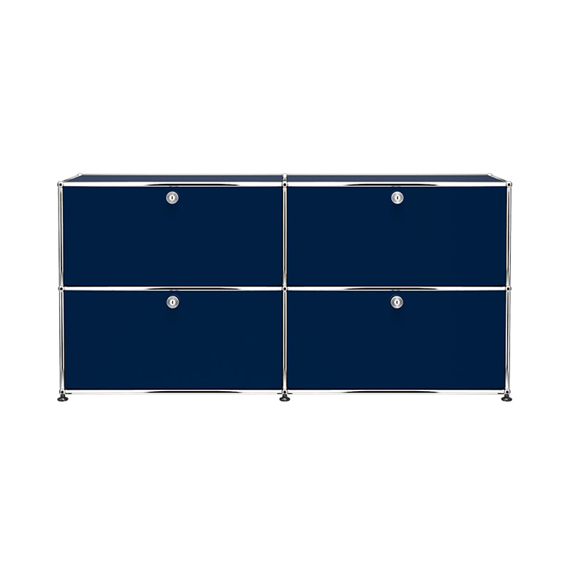 Le meuble Haller E2 est composé de quatre portes abattantes. Le meuble de rangement Haller E2 est doté d'une structure en acier chromé assemblé par des boules de connexion, habillée de panneaux d'acier thermolaqué et monté sur des patins réglables en hauteur.  Portes classiques ne nécessitant pas de clefs. (Sécurisées à la livraison, les portes se déverrouillent pour la première fois à l’aide d’une pièce ou d’une clef normale)