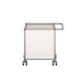 Le coffre USM Haller M53 est monté sur roulettes et possède une poignée coudée permettant de le tracter. Le meuble Haller M53 est doté d'une structure en acier chromé assemblé par des boules de connexion, habillée de panneaux d'acier thermolaqué et monté sur des patins réglables en hauteur. Il est idéal pour ranger les jouets dans la chambre d'enfants.