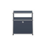 Parfait en table de chevet, le meuble Haller M55 est composé d’une porte abattante, d’un rayon intermédiaire. Le meuble Haller M55 est doté d'une structure en acier chromé assemblé par des boules de connexion, habillée de panneaux d'acier thermolaqué et monté sur des patins réglables en hauteur.
