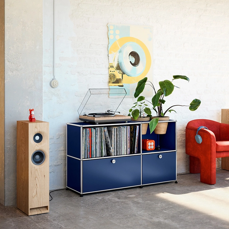 Grâce aux accessoires pour plantes en pot, le système USM Haller ne se contente plus d’offrir une surface de rangement, il se mue en un splendide écrin de verdure.
