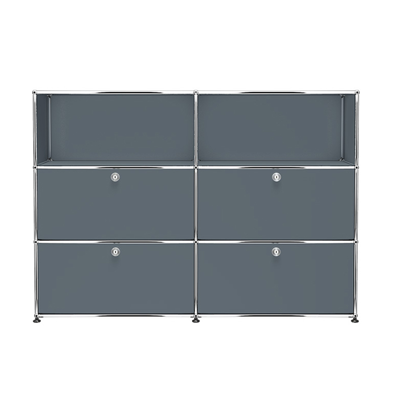 meuble de rangement Haller G3 est composé de quatre portes abattantes et deux modules ouverts. Le