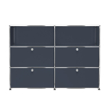 meuble de rangement Haller G3 est composé de quatre portes abattantes et deux modules ouverts. Le