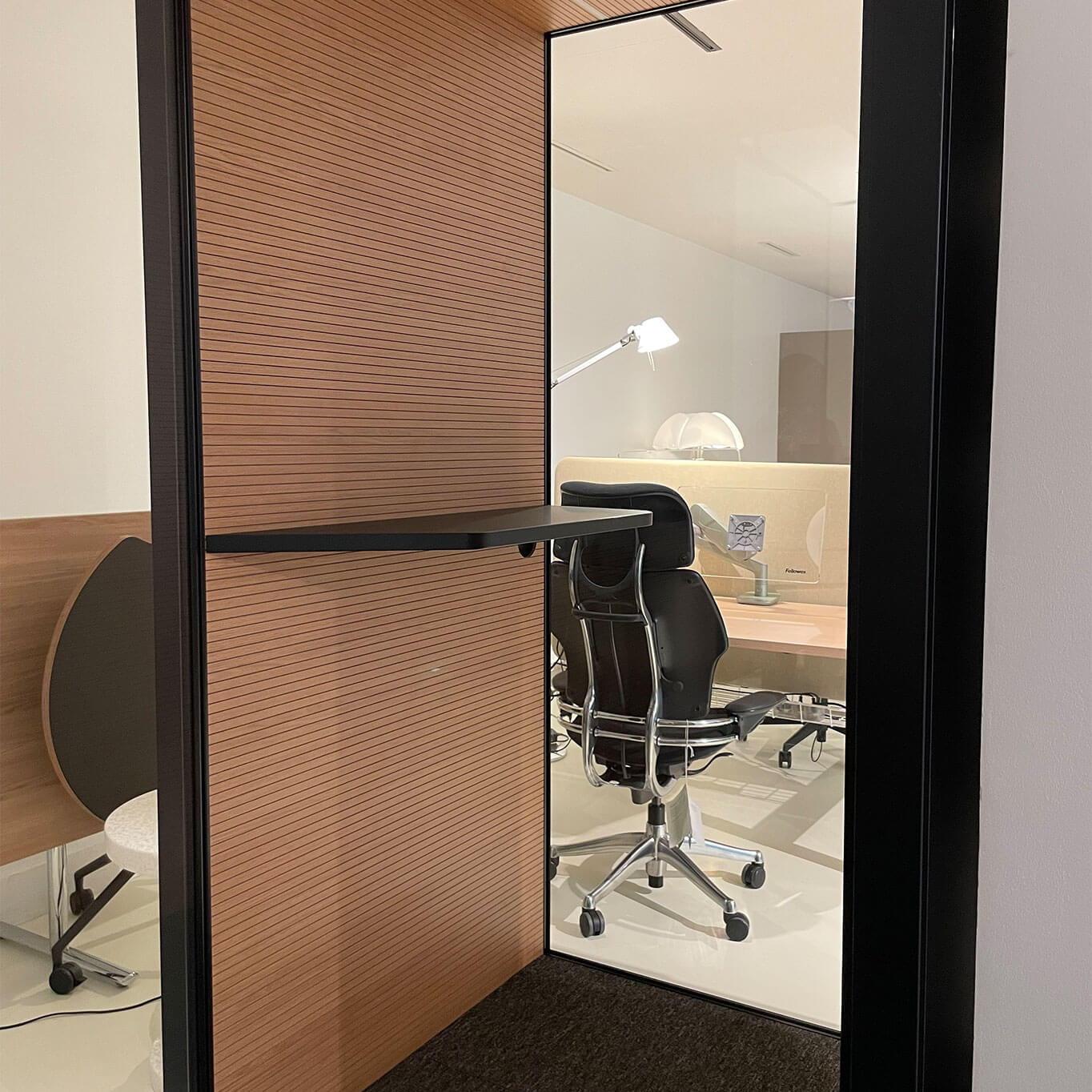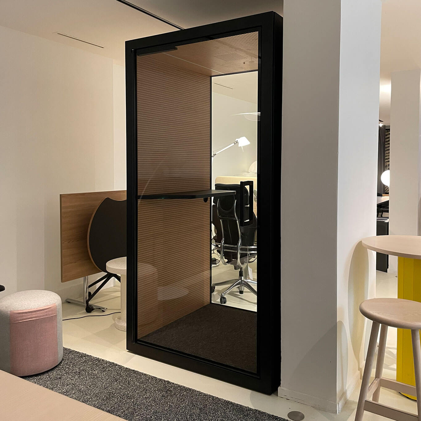 La cabine acoustiqueMini de Fantoni est une cabine acoustique d'occasion compacte pensée pour répondre aux besoins de confidentialité et de concentration dans les environnements de travail ouverts. Conçue par le centre de recherche et développement interne de la marque italienne, cette solution modulaire combine performance acoustique, design épuré et technologie intégrée. Avec ses dimensions réduites (environ 120 × 120 cm), la Mini est idéale pour passer un appel, participer à une visioconférence ou travailler temporairement dans le calme, sans quitter l’open space. Sa structure autoportante permet une installation simple et rapide, sans travaux lourds. Sur le plan technique, la cabine intègre les panneaux 4akustik, un système exclusif développé par Fantoni, garantissant une excellente absorption acoustique tout en respectant les normes de sécurité et d’hygiène (faible émission de COV, surface antibactérienne). Elle est équipée d’un éclairage LED automatique à détection de présence, d’un système de ventilation silencieux, ainsi que de prises de courant et ports de connectivité pour répondre aux exigences du travail mobile. Disponible dans plusieurs finitions et coloris, la Mini d'occasion s’intègre parfaitement à tout type d’environnement professionnel, des bureaux tertiaires aux espaces de coworking. Alliant compacité, confort acoustique et esthétique sobre, elle représente une solution efficace pour améliorer le bien-être et la productivité au bureau.