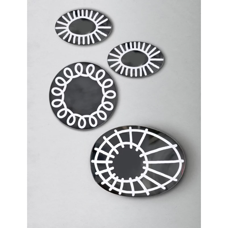 Avec Brick, Paola Navone a dessiné une collection de miroirs muraux aux formes arrondies et irrégulières. Graphiques et originaux, les miroirs Brick Gervasoni sont ornés de dessins à la peinture blanche qui semblent recréer des coups de pinceaux faits à main levée. Les quatre modèles s'utilisent aussi bien seuls qu'en composition de plusieurs éléments.