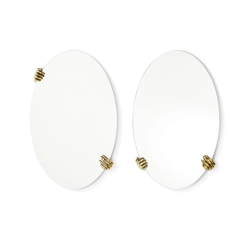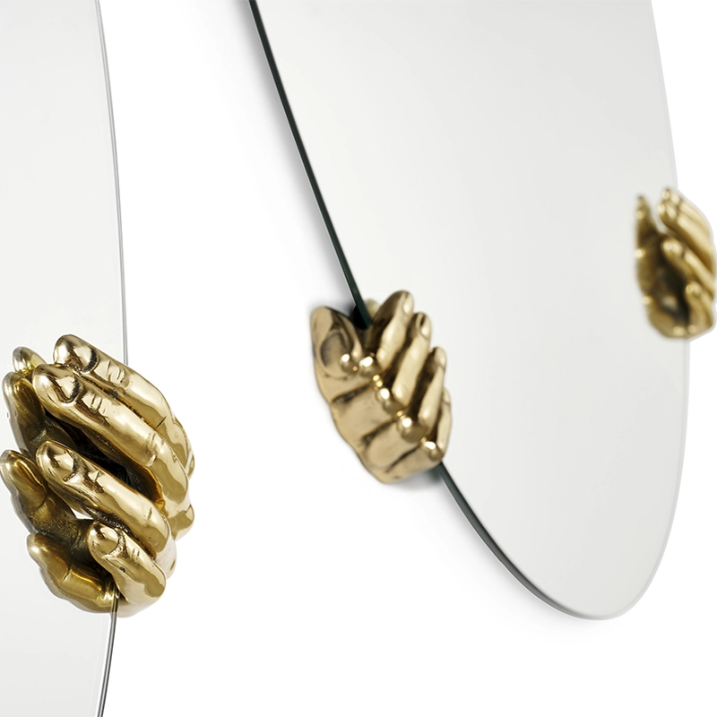 Selfie est une collection de miroirs muraux, déclinée dans différentes formes géométriques. La série se distingue par les détails en laiton en forme de mains, qui semblent tenir le miroir. Edité par Mogg, le miroir Selfie met l’accent sur l’effet d’illusion et des réalités multiples, à travers ces mains en laiton sur les bords du miroir qui peuvent être placées selon différentes configurations.
